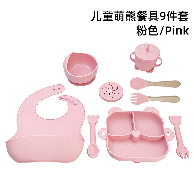 pink – 9-piece bear-themed dinner set