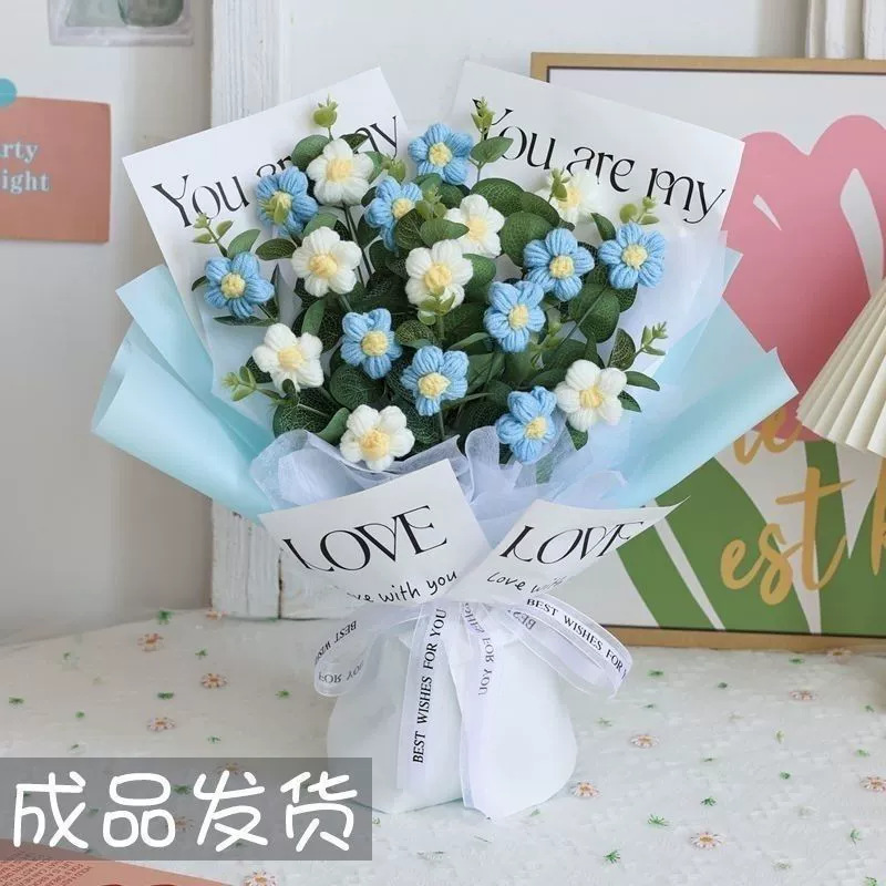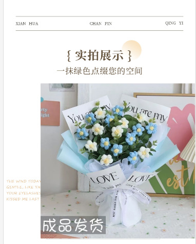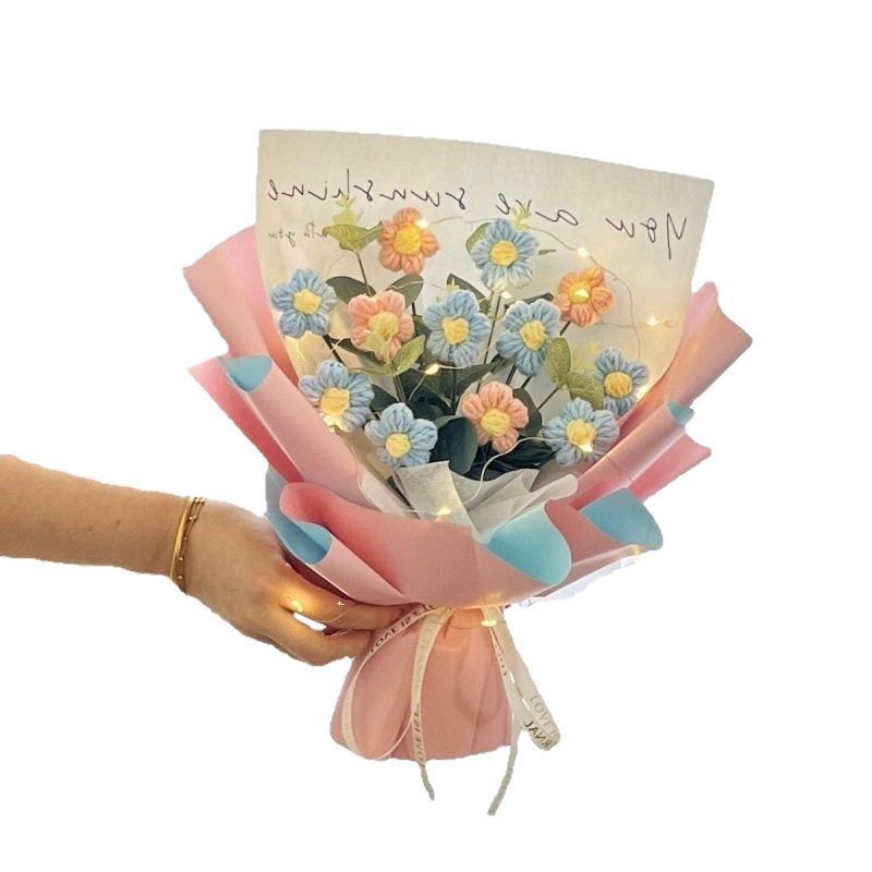 12 sky blue flowers + gift bag + light strip + greeting card