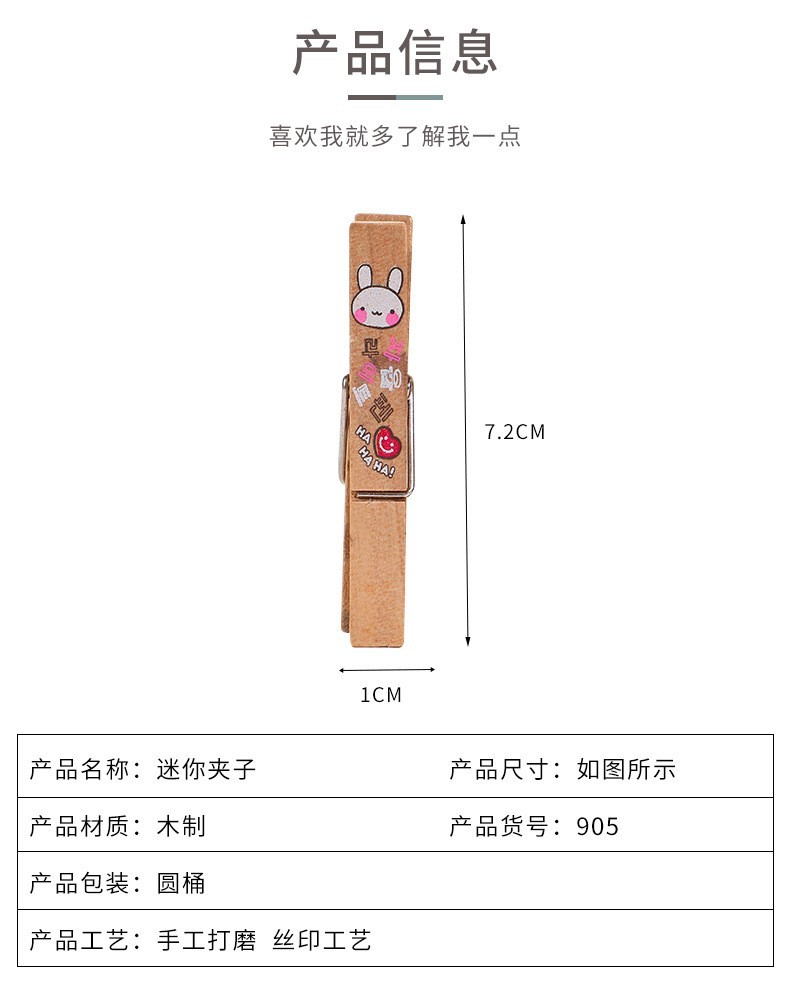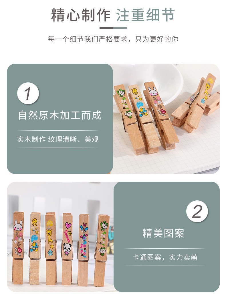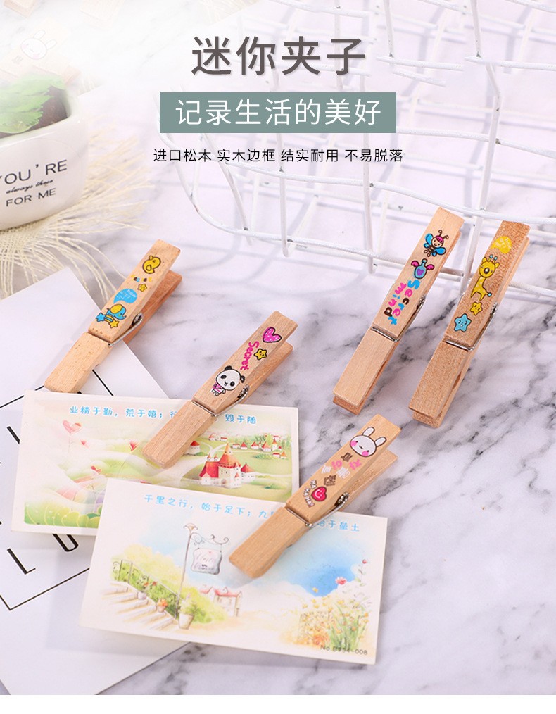 7.2*1cm colorful printed wooden clip diy handmade finish photo folder wooden little clip wholesale factory direct sales