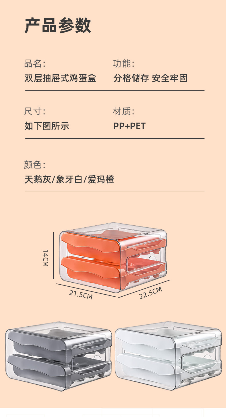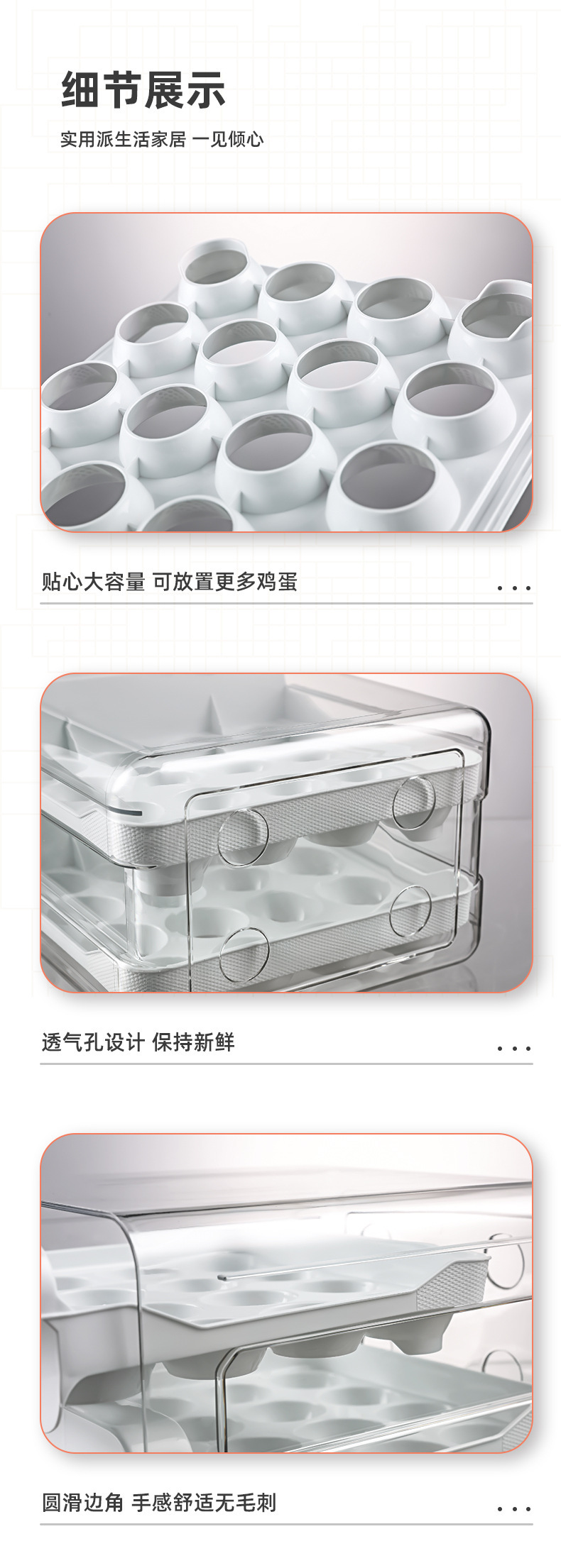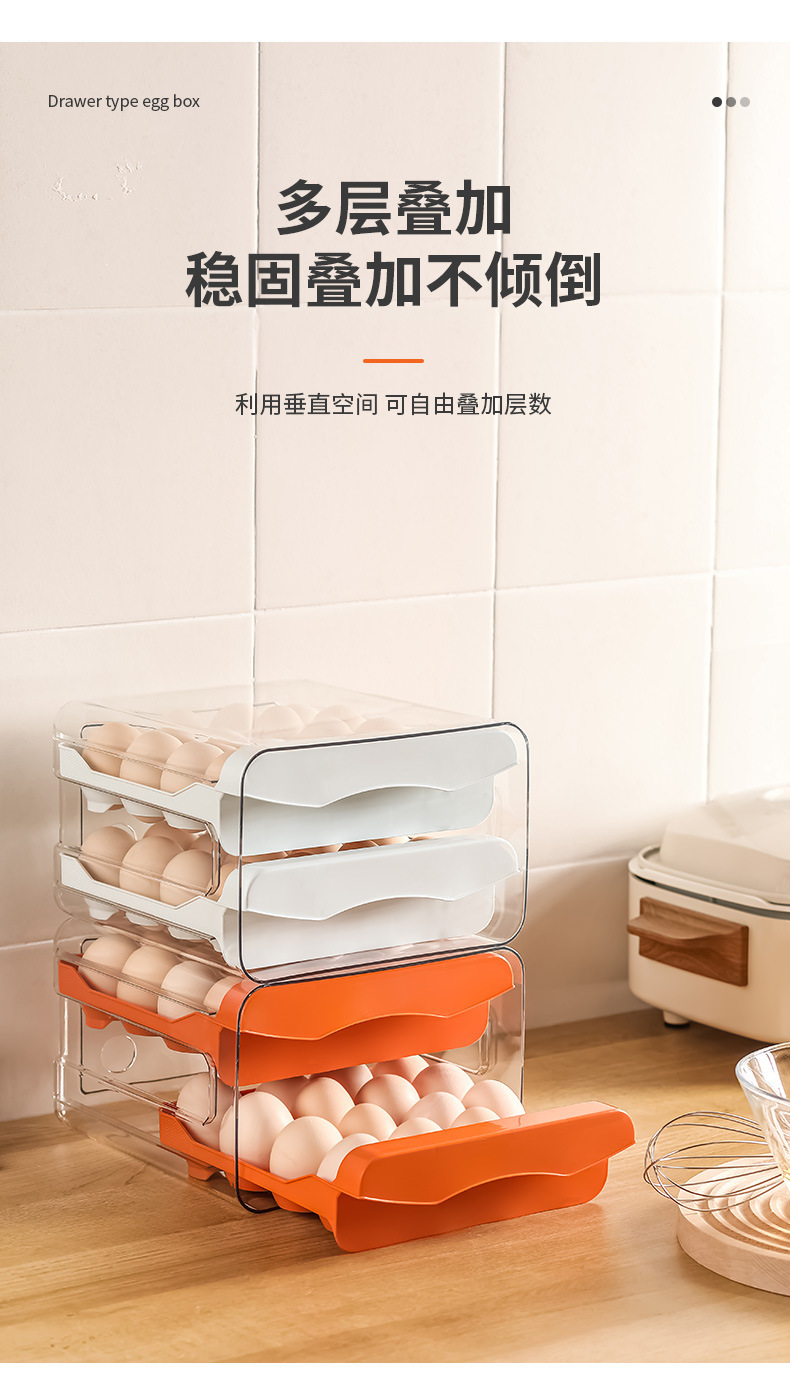 double-layer 32-grid egg storage box in milky white