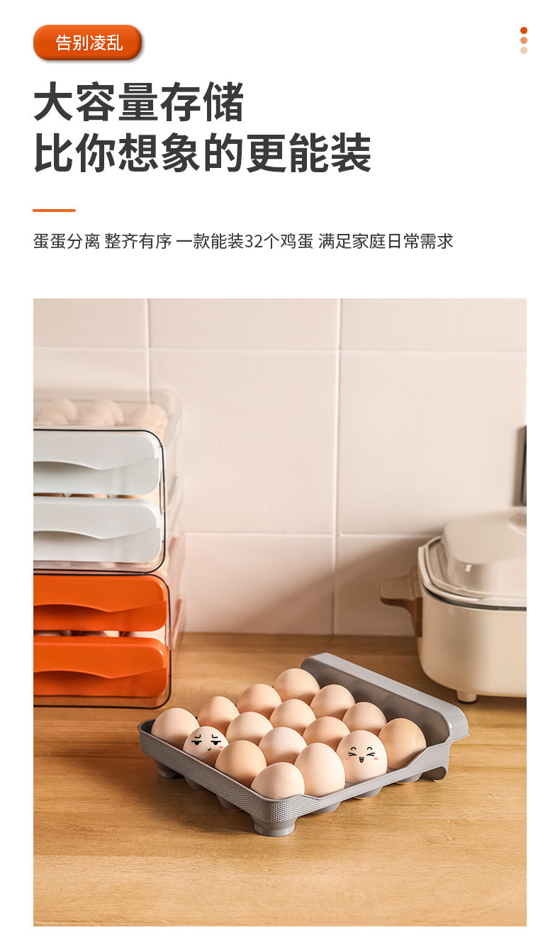 double-layer 32-grid egg storage box, gray
