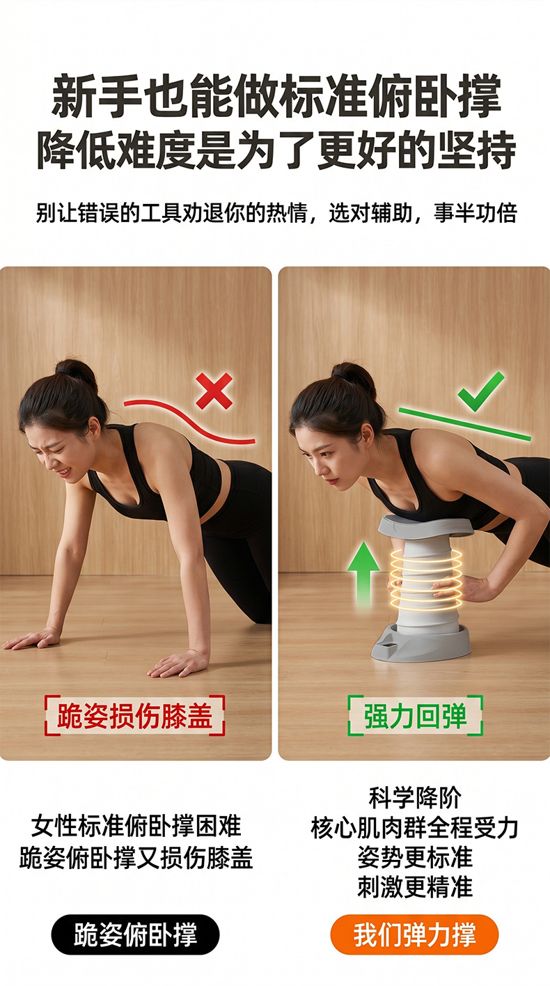 specifications: [orange] spring push-ups aid, [purple] spring down