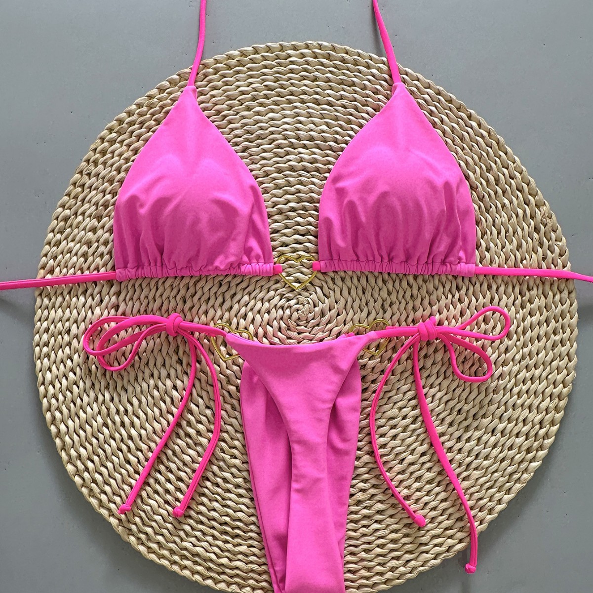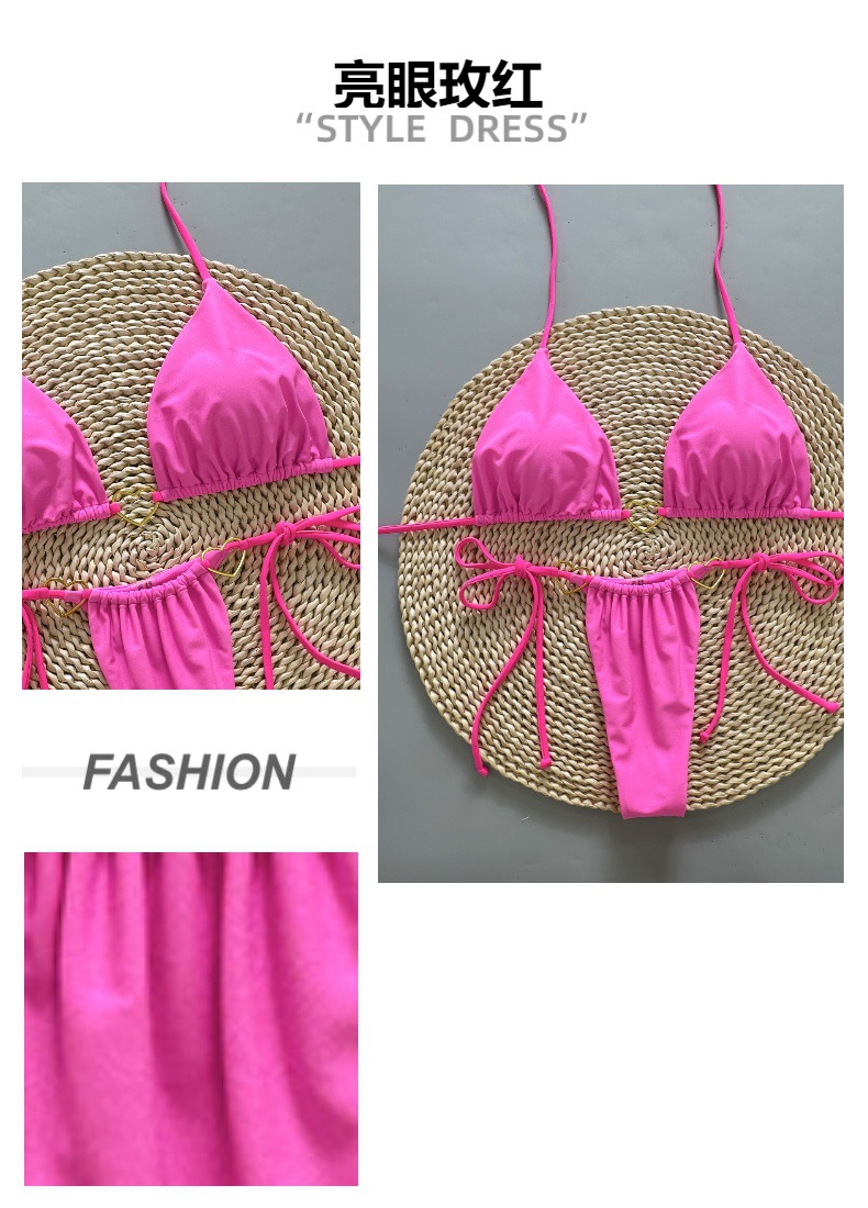 2026 new rose red banded bikini suit triangle sexy split swimsuit vacation beach swimsuit wholesale