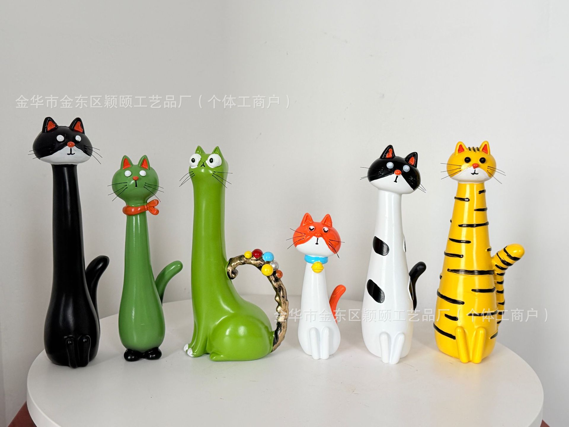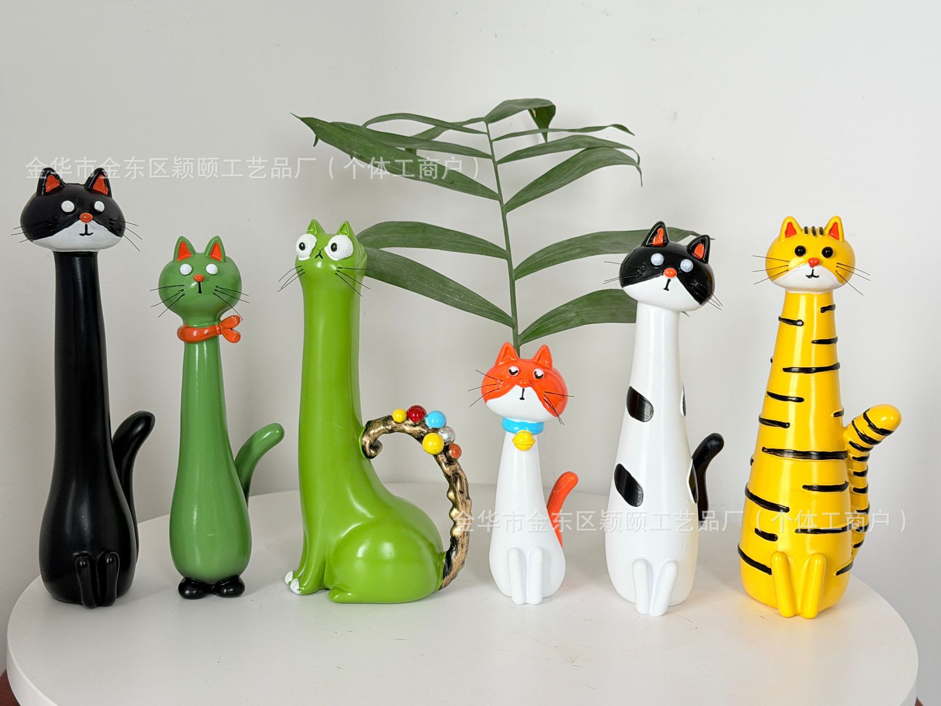 color: f black cat flower pot, c white cat, e dark green red scarf cat, a light