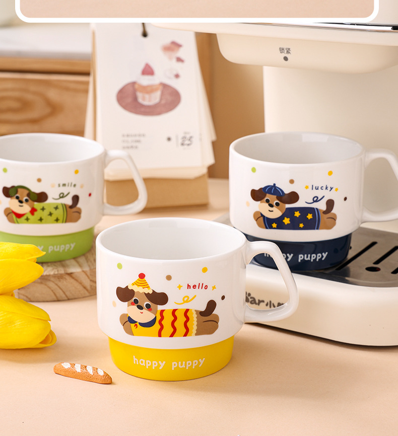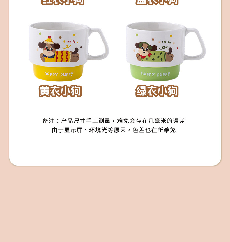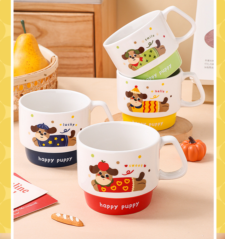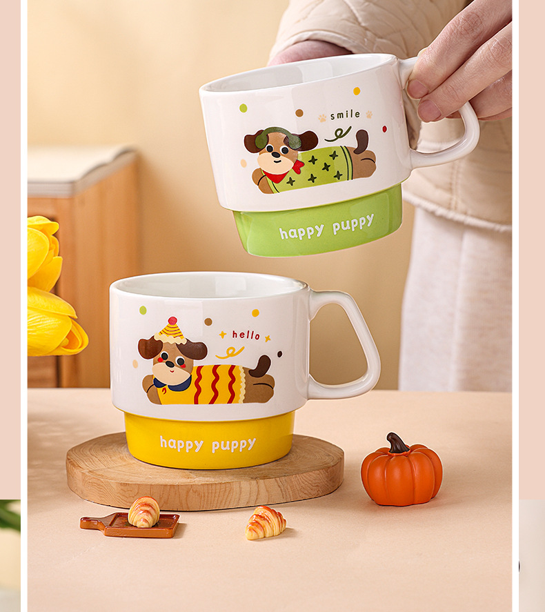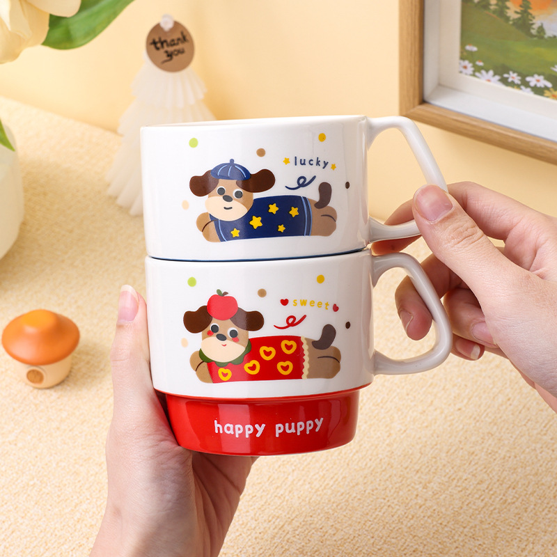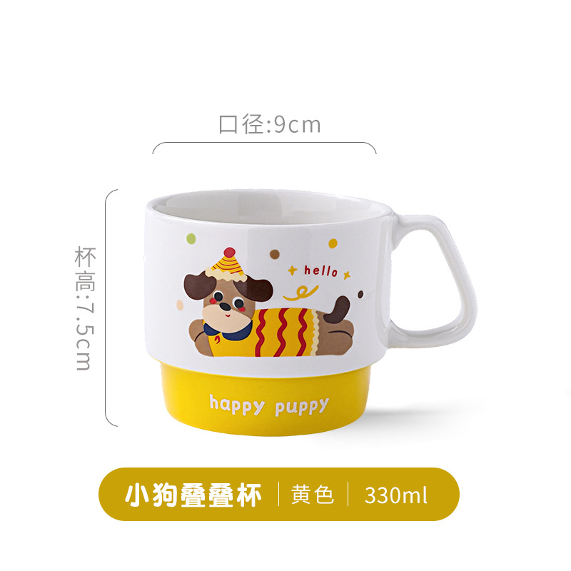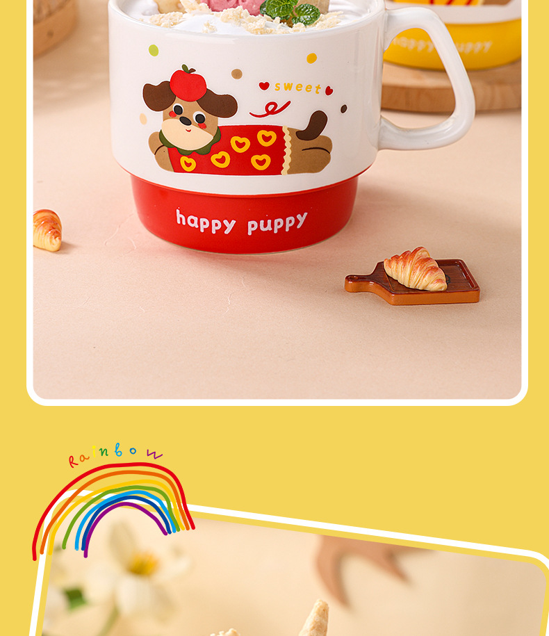 color: stacked cup (sausage dog) red, stacked cup (sausage dog) yellow