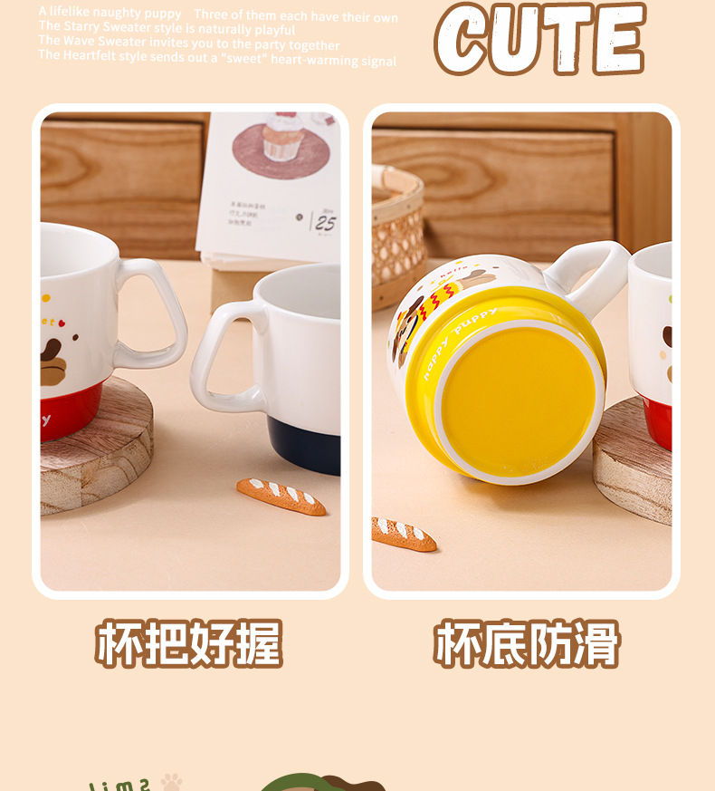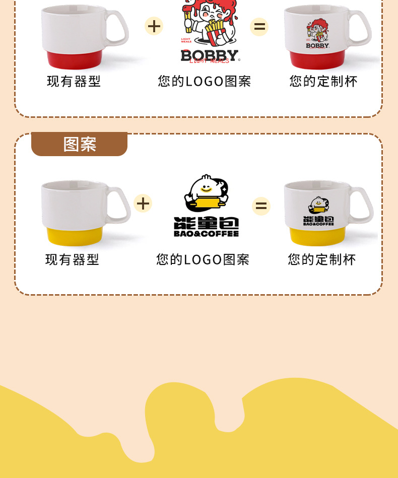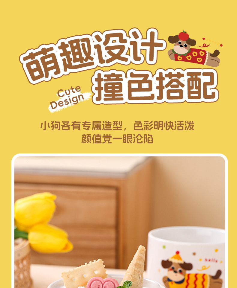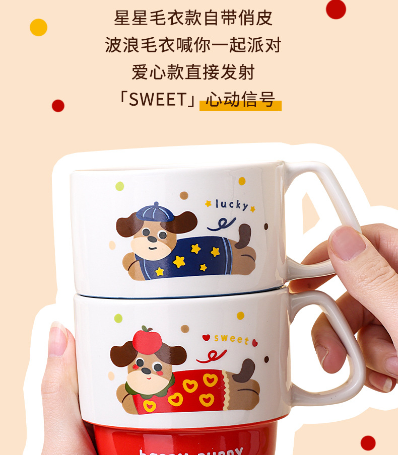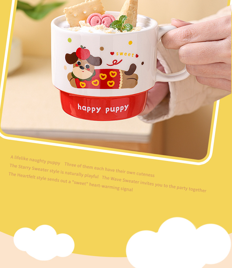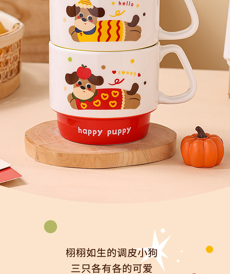 color: stacked cup (sausage dog) red, stacked cup (sausage dog) yellow