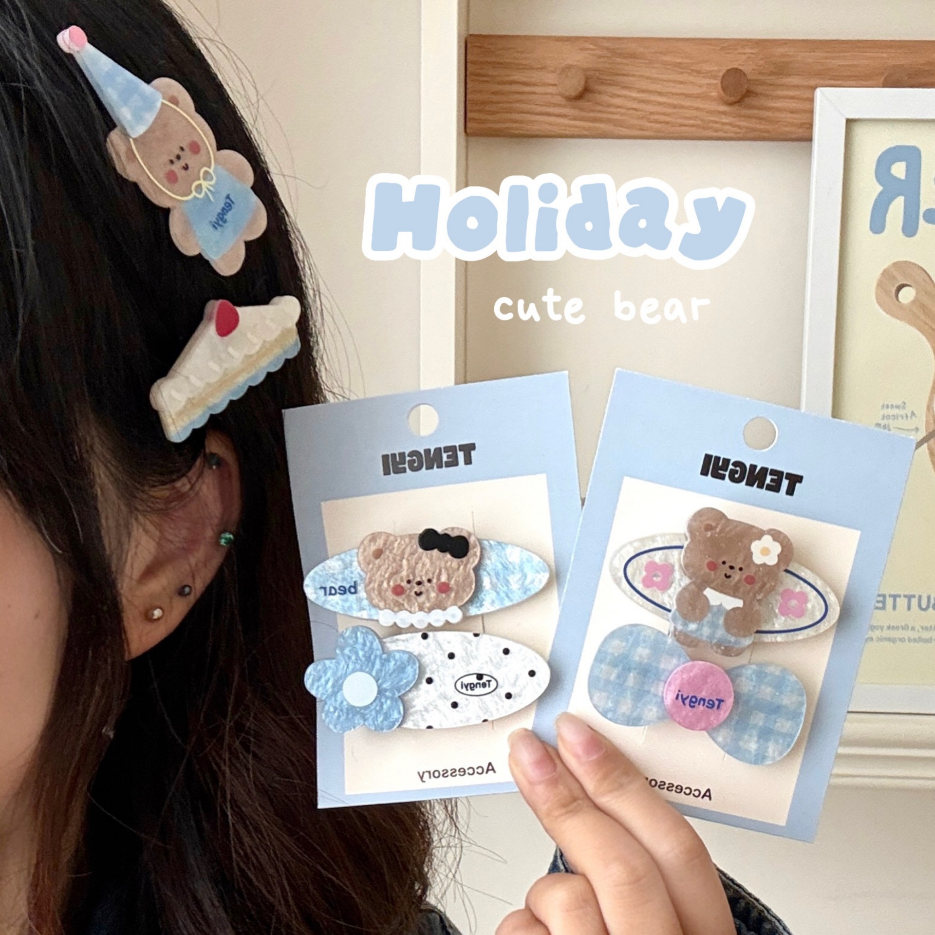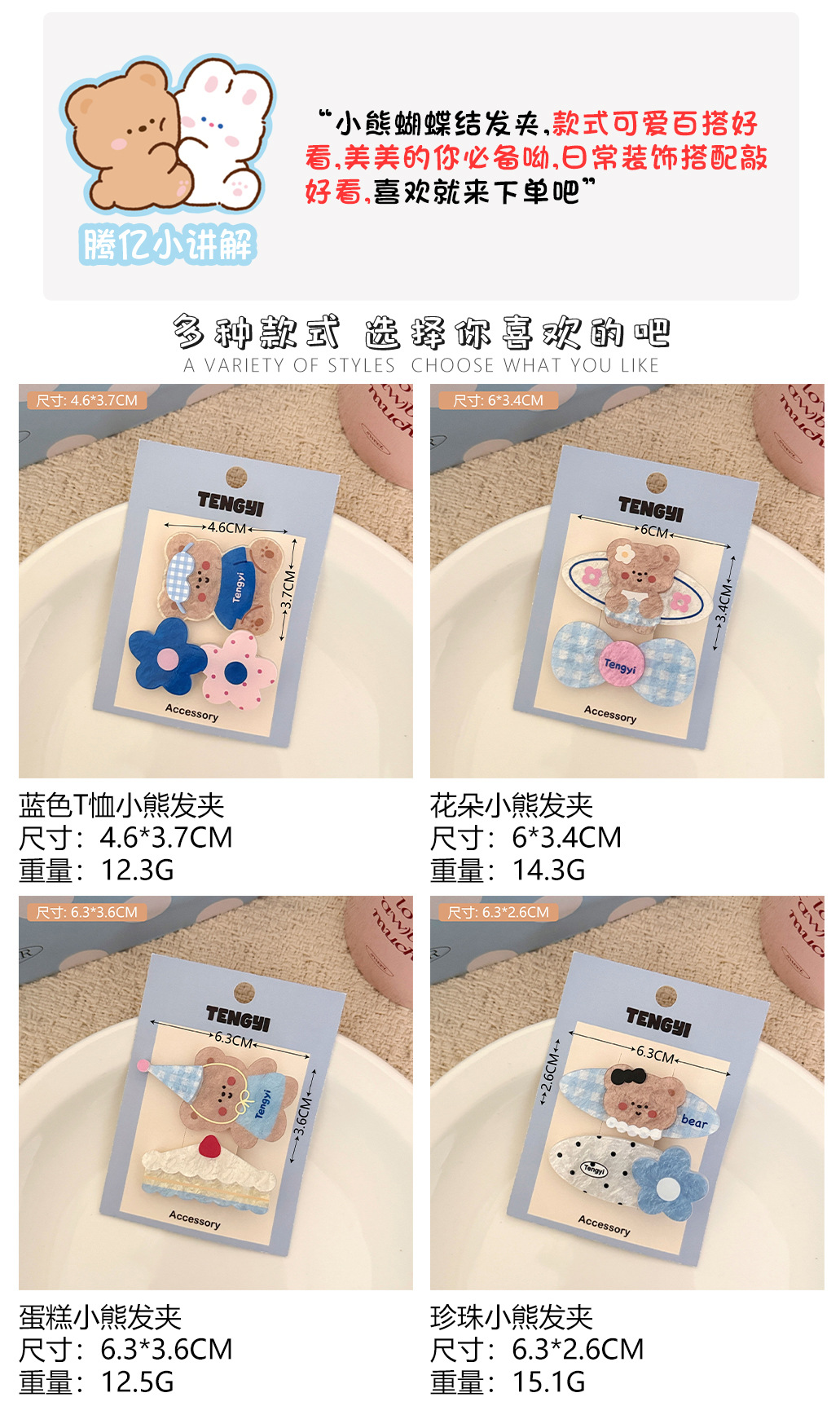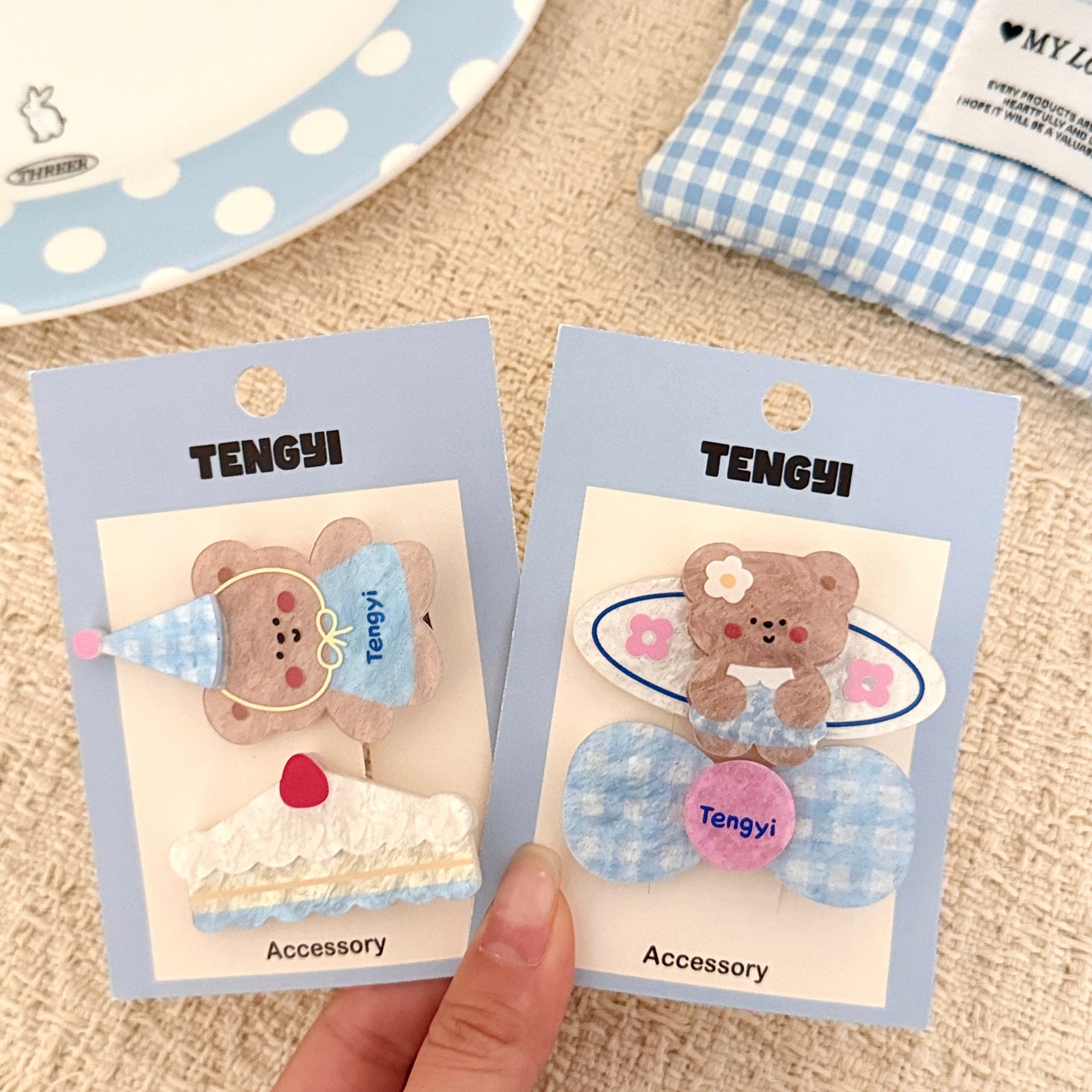 1# blue t-shirt little bear barrettes