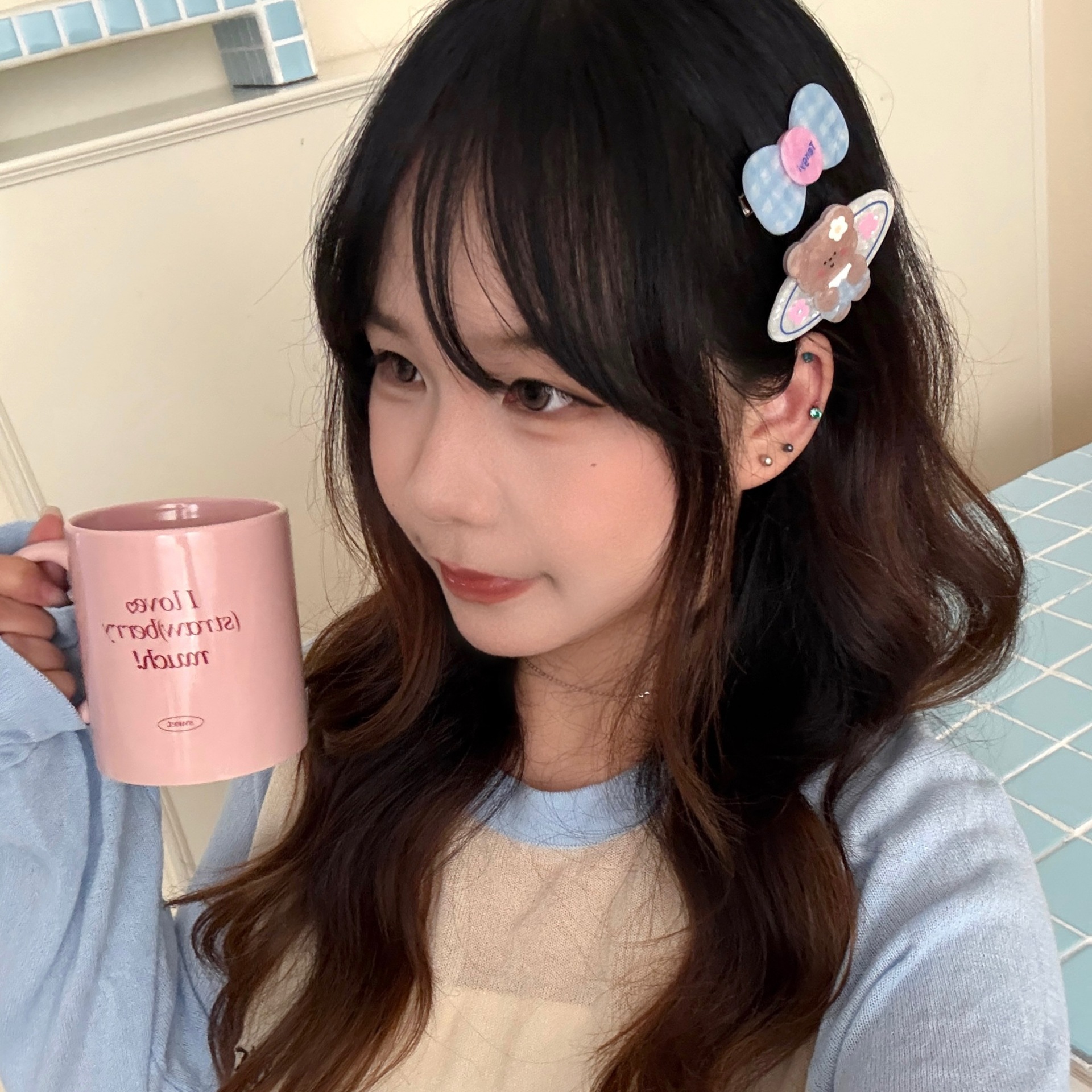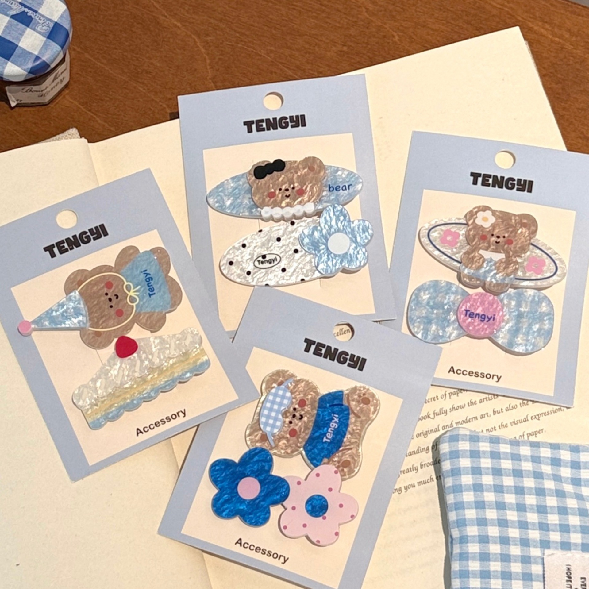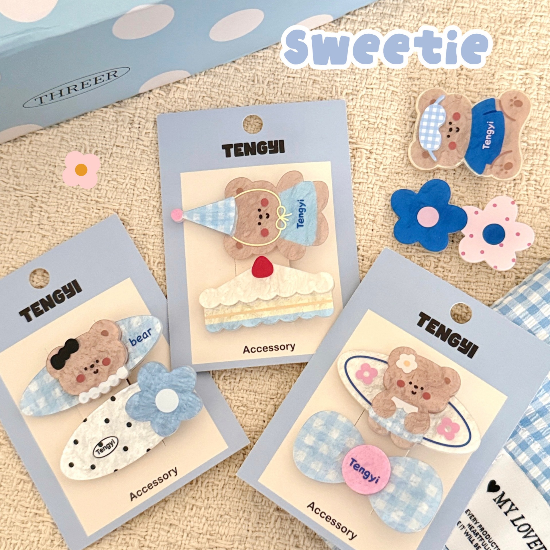 1# blue t-shirt little bear barrettes