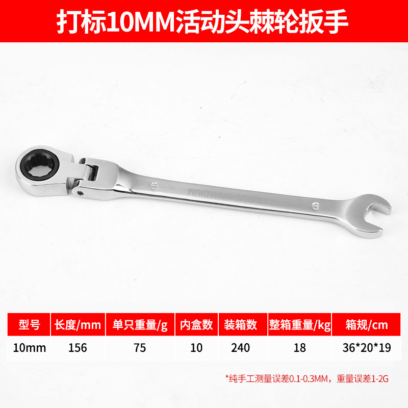 marking 10mm movable head ratchet wrench