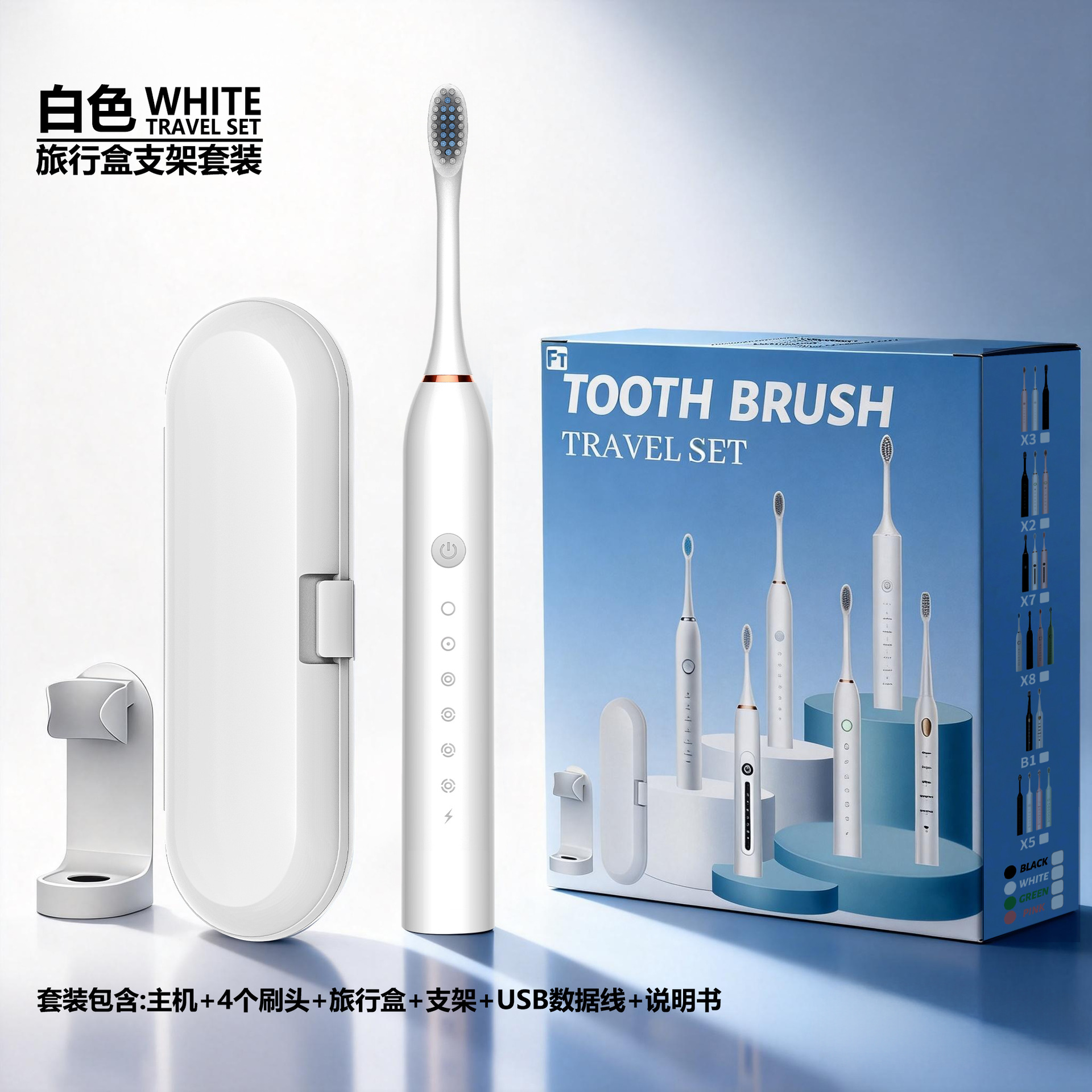 白色4刷头+旅行盒+支架【套装彩盒】