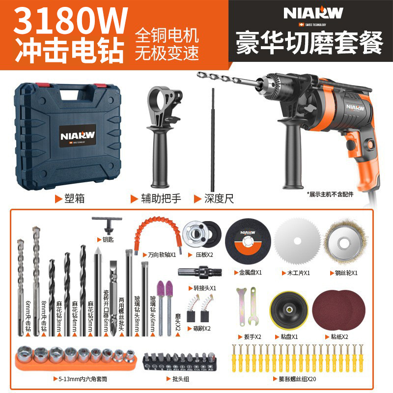 3180W冲击钻豪华套餐+切磨+塑箱(13A夹头)
