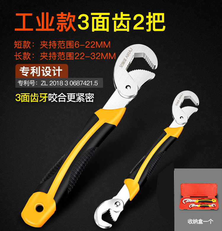 专业款三面齿大小号扳手一套+收纳盒