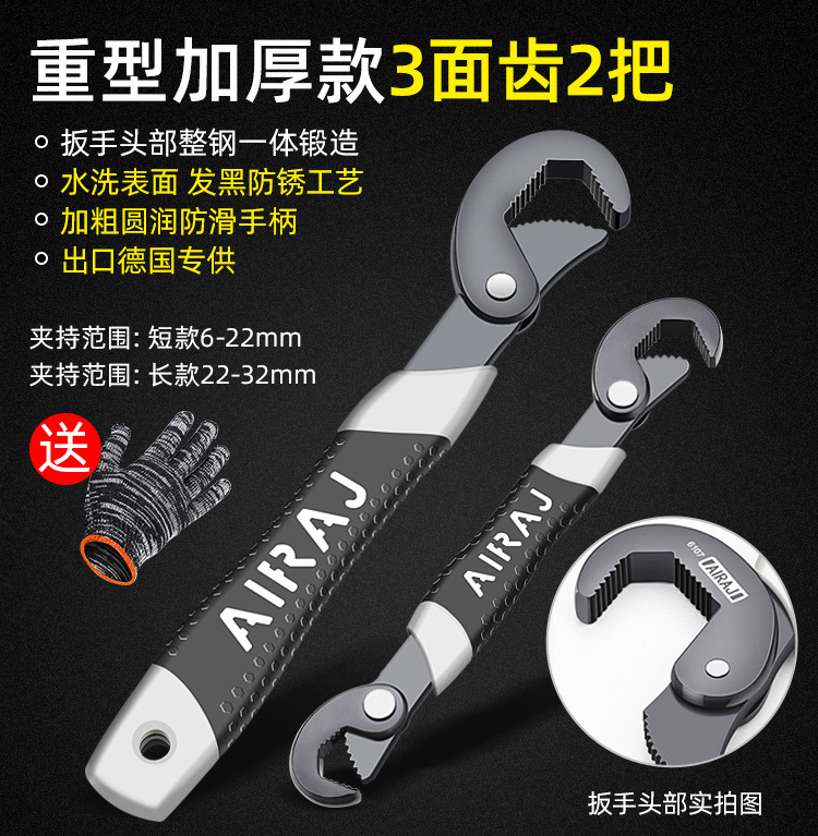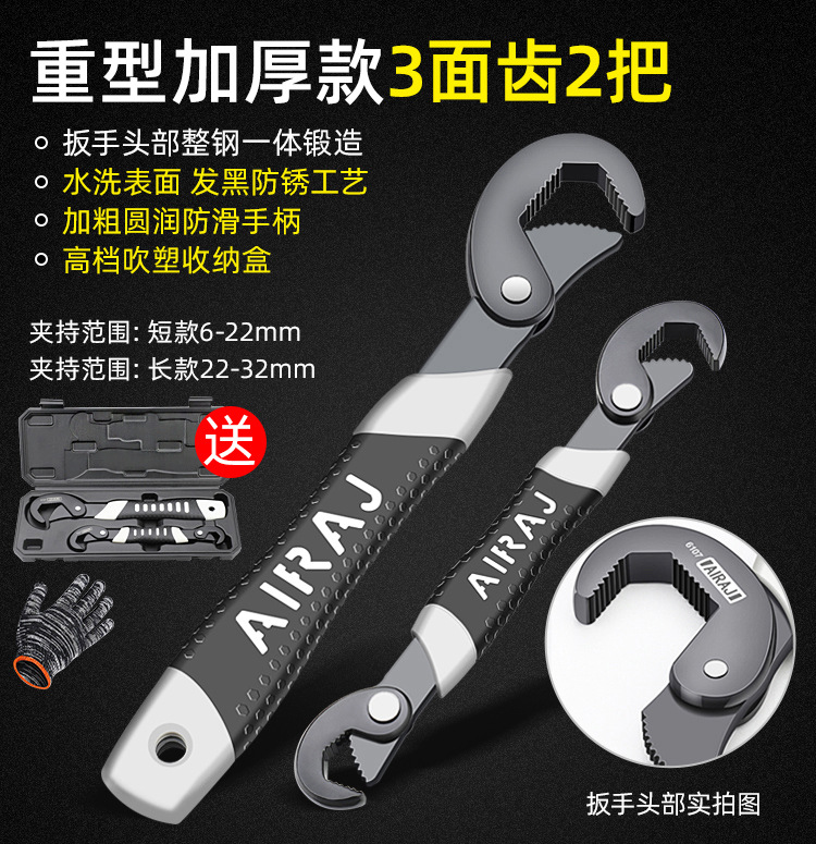 专业款三面齿大小号扳手一套