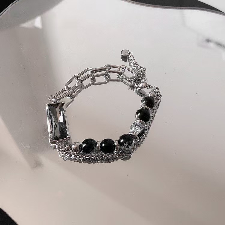 gray diamond burst beads bracelet