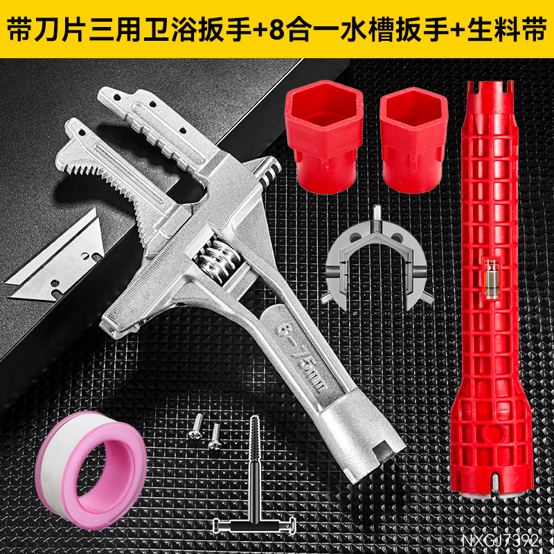 卫浴扳手【带刀片】+水槽扳手+生料带