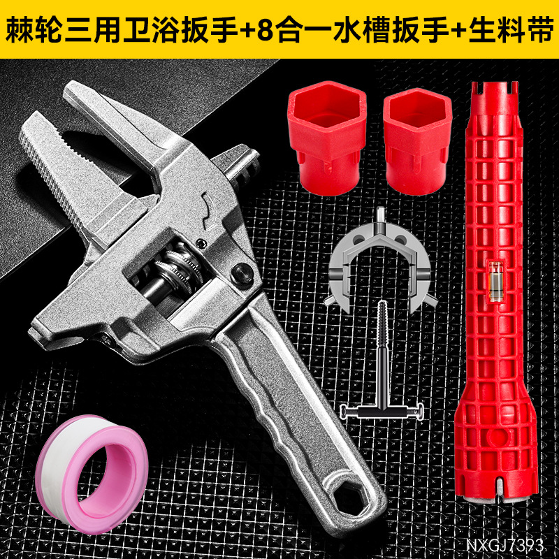 卫浴扳手【棘轮款】+水槽扳手+生料带