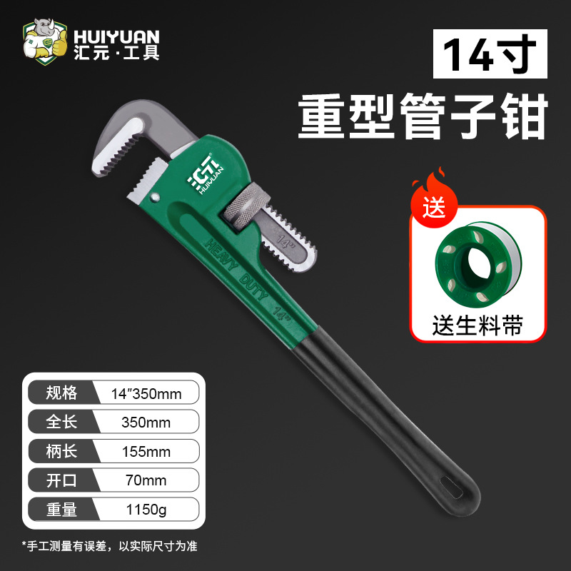 美式14寸管子钳【超大开口70MM/钳头加齿加厚加宽】送生料带