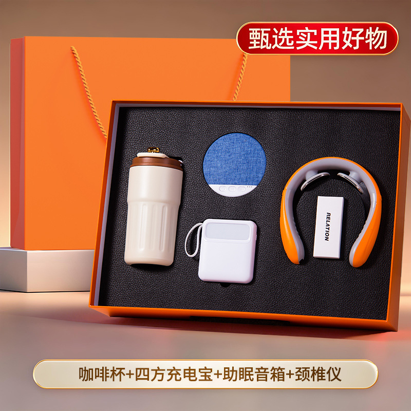 橙色四件套【316咖啡杯+助眠音箱+颈椎按摩仪+自带线充电宝】