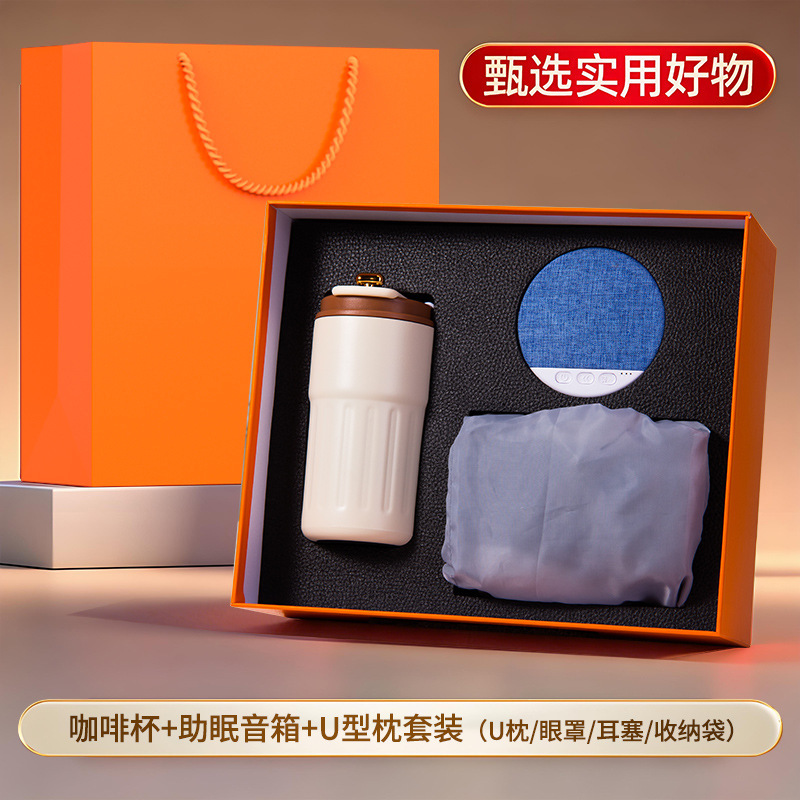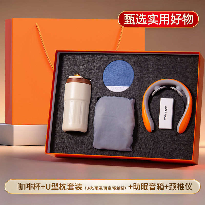 橙色四件套【316咖啡杯+助眠音箱+颈椎按摩仪+充气U型枕四件套】