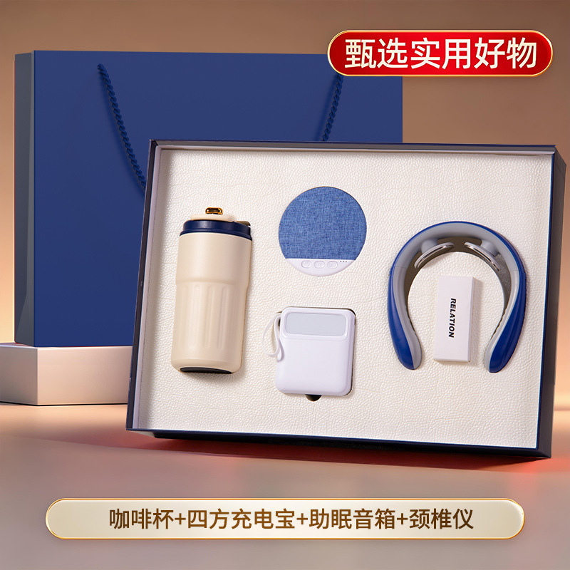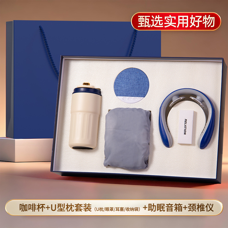 蓝色四件套【316咖啡杯+助眠音箱+颈椎按摩仪+自带线充电宝】