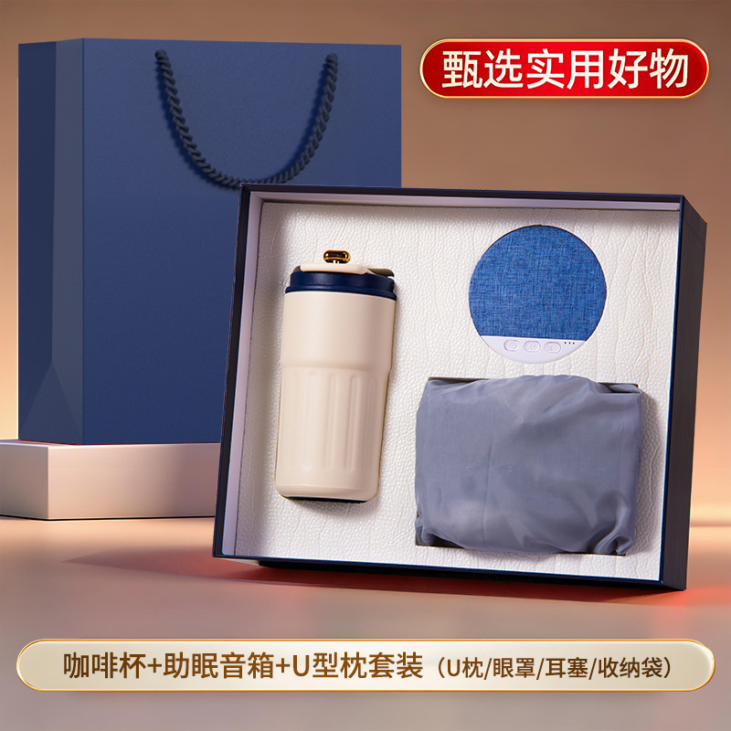 蓝色三件套【316咖啡杯+助眠音箱+充气U型枕四件套】