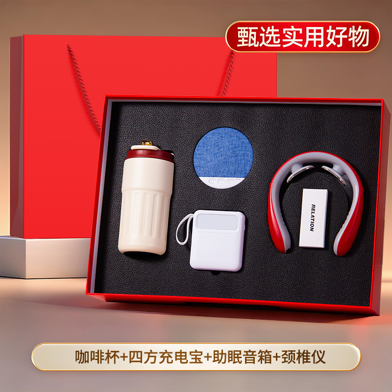 红色四件套【316咖啡杯+助眠音箱+颈椎按摩仪+自带线充电宝】