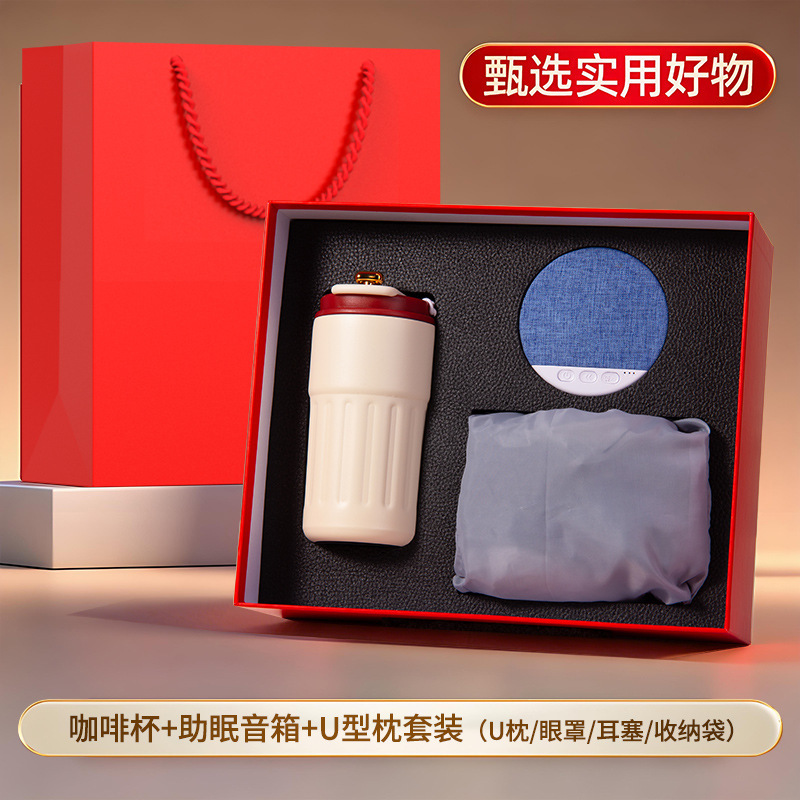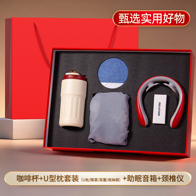 红色四件套【316咖啡杯+助眠音箱+颈椎按摩仪+充气U型枕四件套】