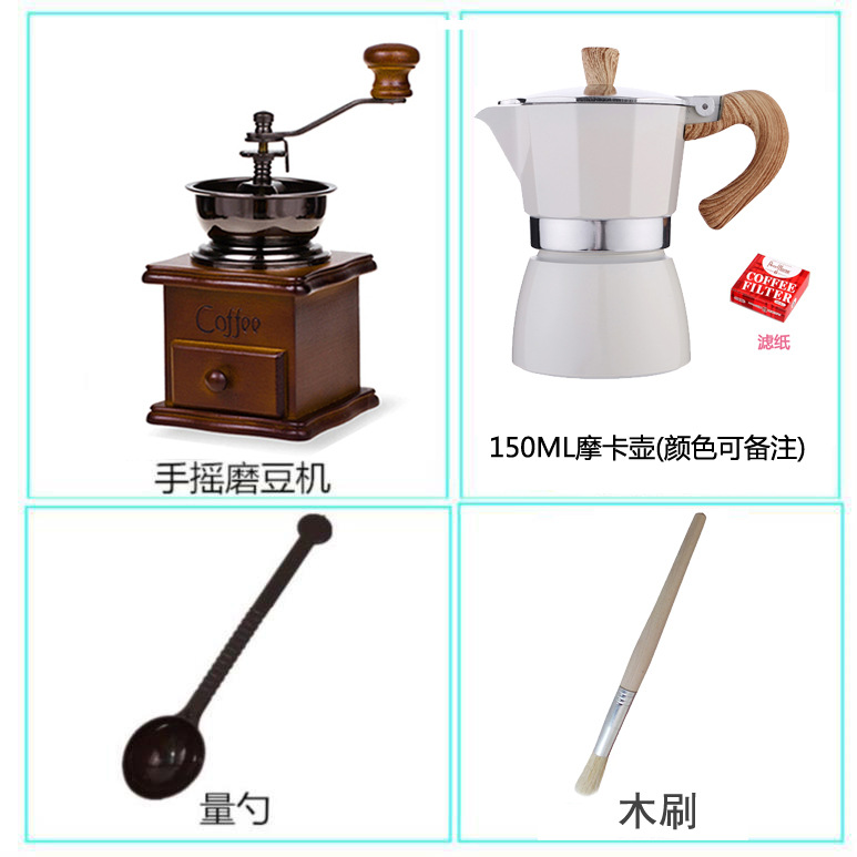 深色+奶白3号摩卡壶 滤纸 木刷