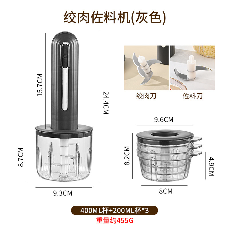 【英文包装】USB电动料理机:黑色(0.4L+3小杯)