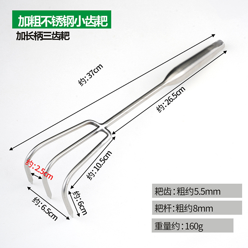 加粗加长柄不锈钢三齿耙