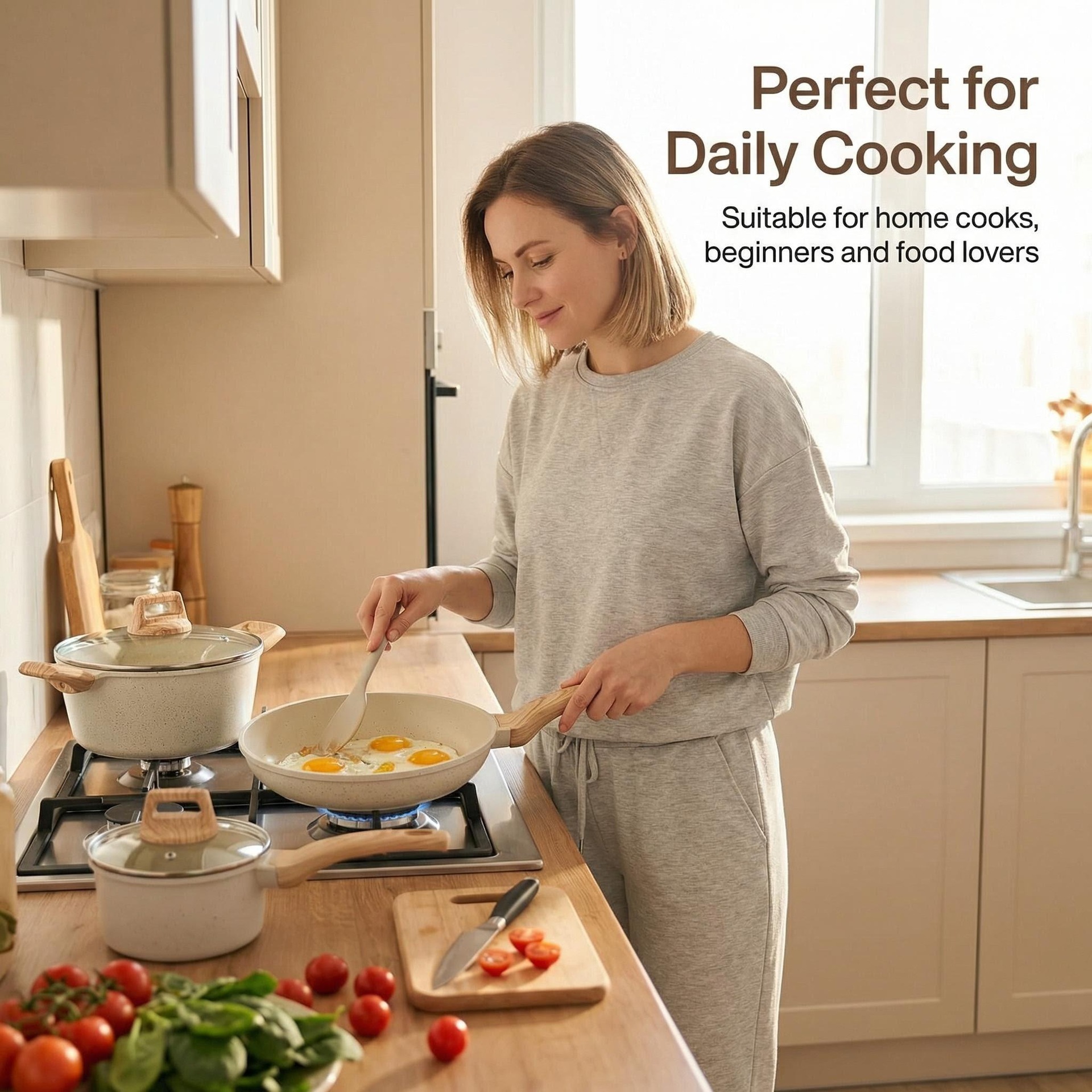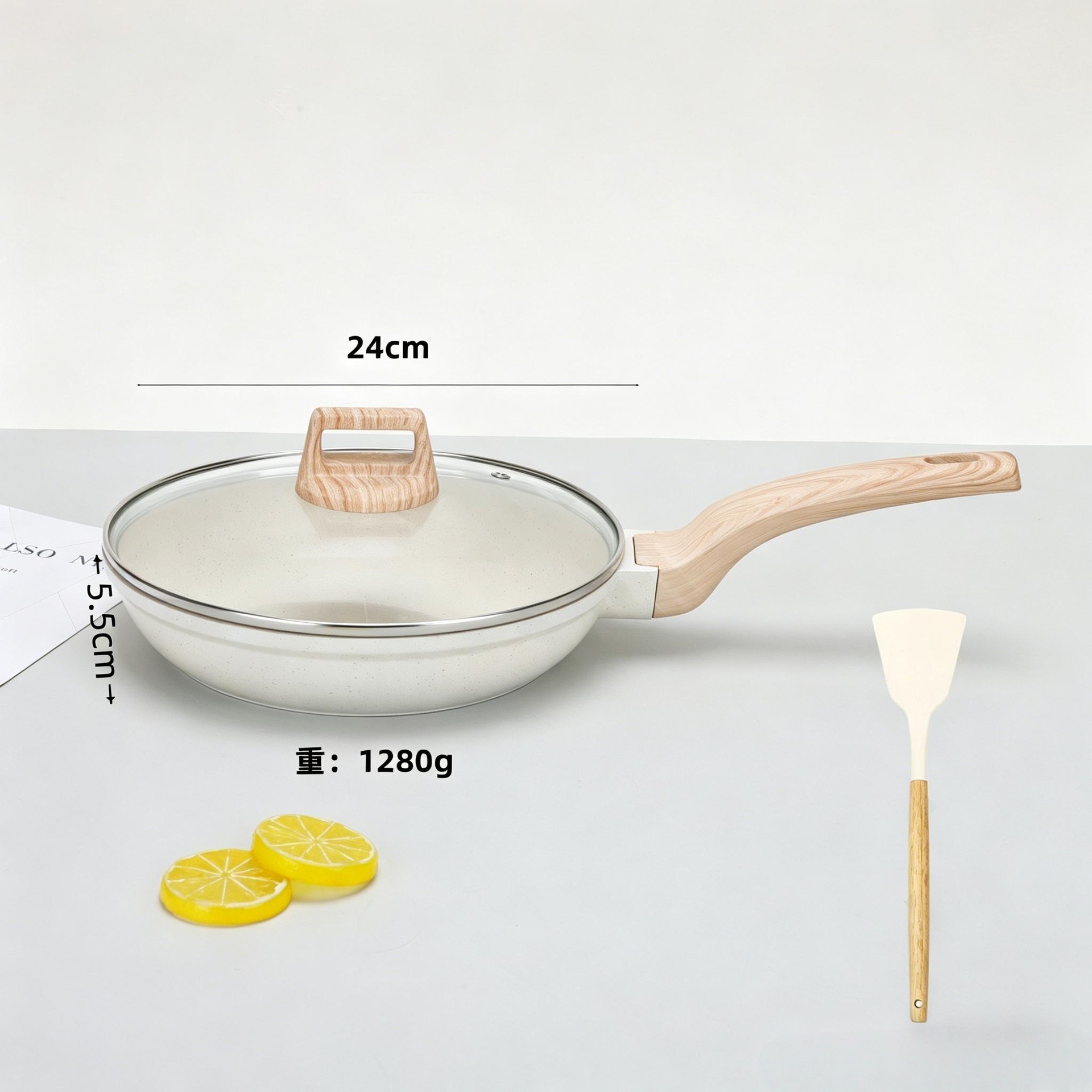 24cm frying pan + glass lid + silica gel turner