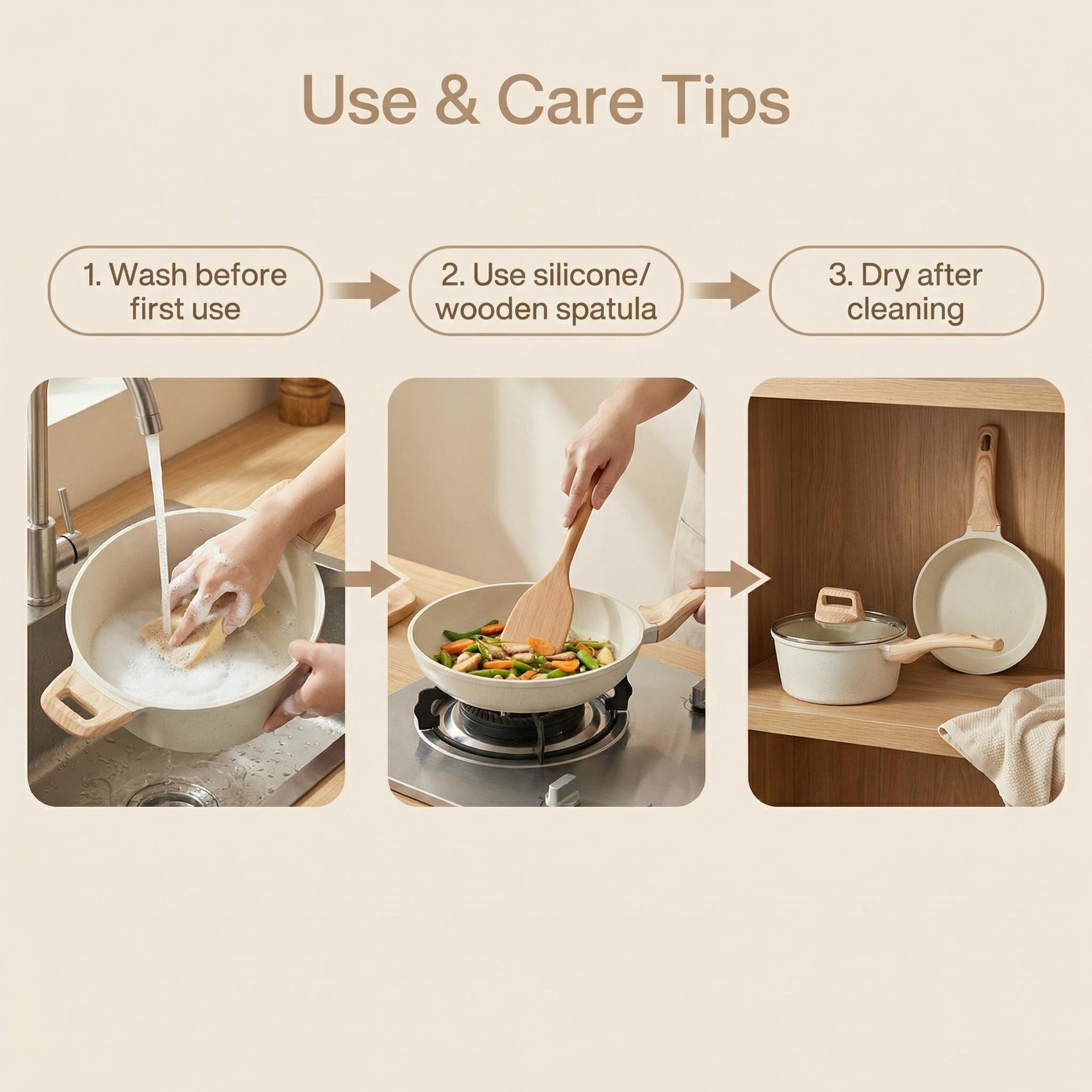 30cm frying pan + glass lid + silica gel turner