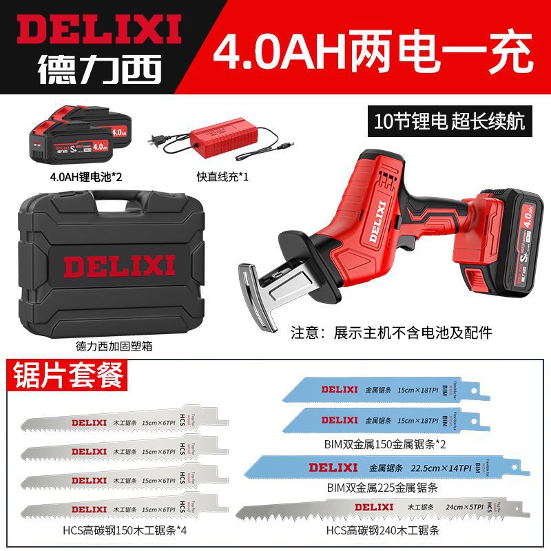 德力西往复锯4.0Ah两电塑箱+锯条