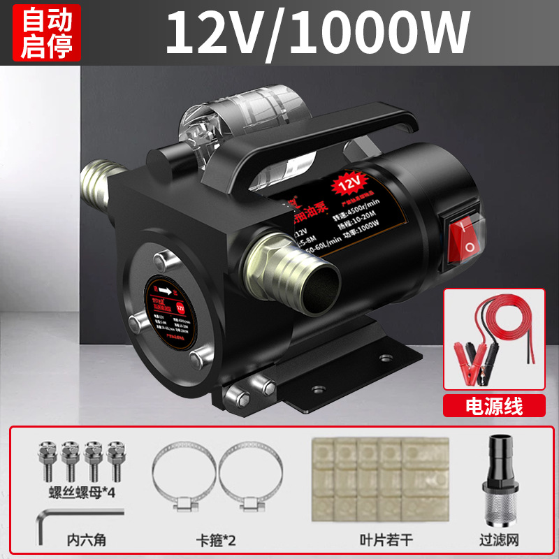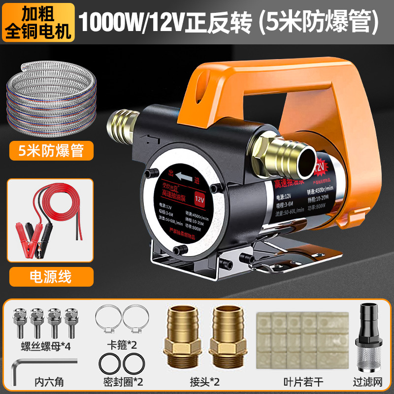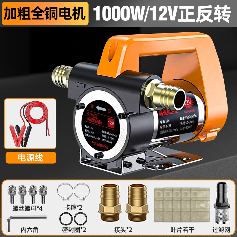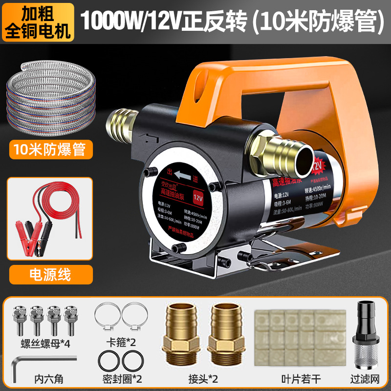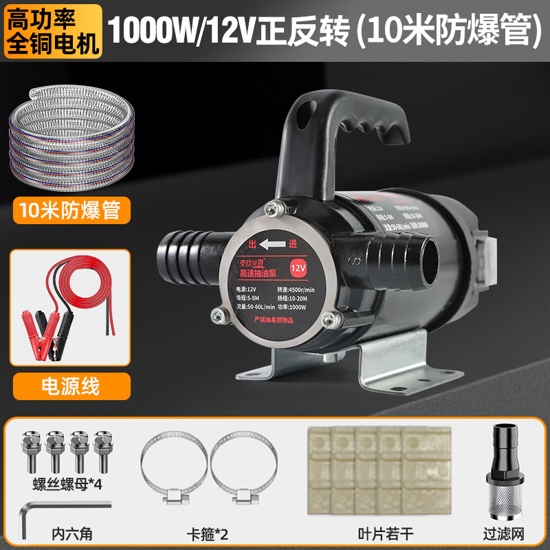 【油水两用1000W】12V(正反转)+10米管-大功率