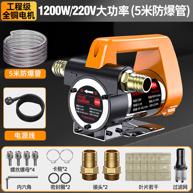 【专业抽油1200W】220V+5米管-大功率