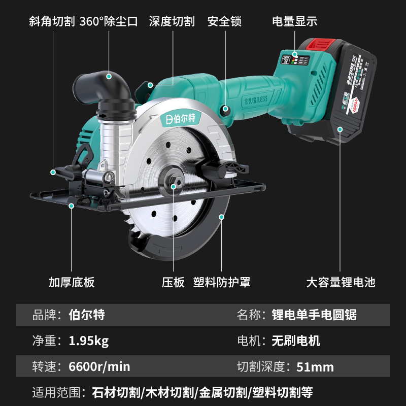 新型140mm单手锯【外转子大功率】15节6.0A无刷两电一充+锯片