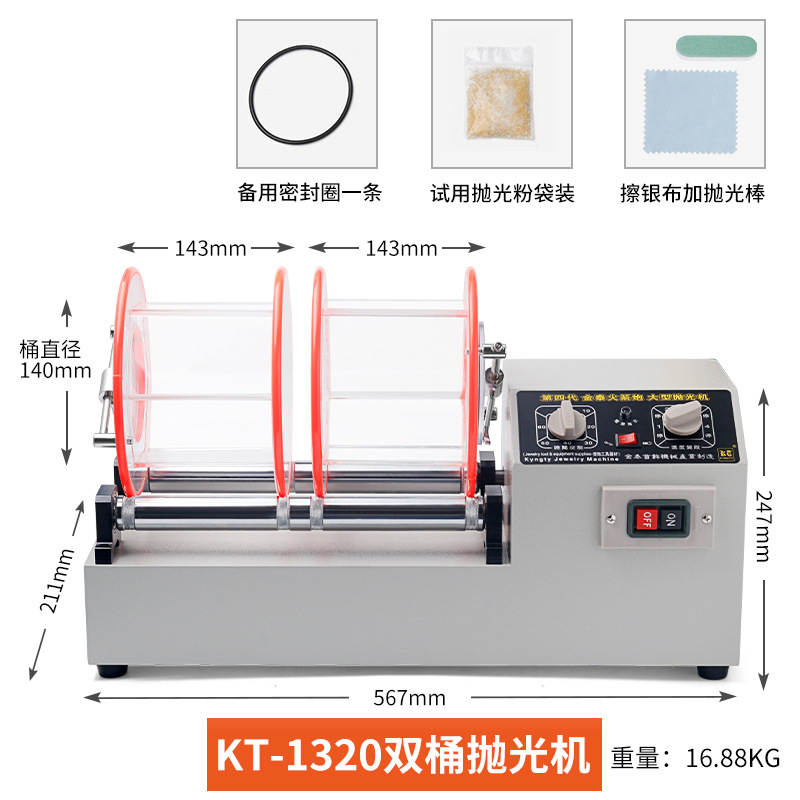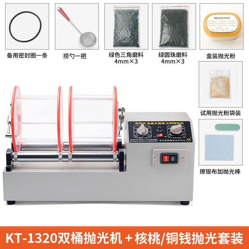 【KT1320】10KG双桶抛光机:核桃/铜钱/首饰套装