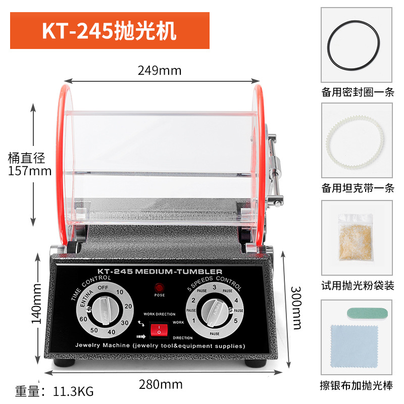 【KT245】8KG滚筒抛光机:官方出厂标配
