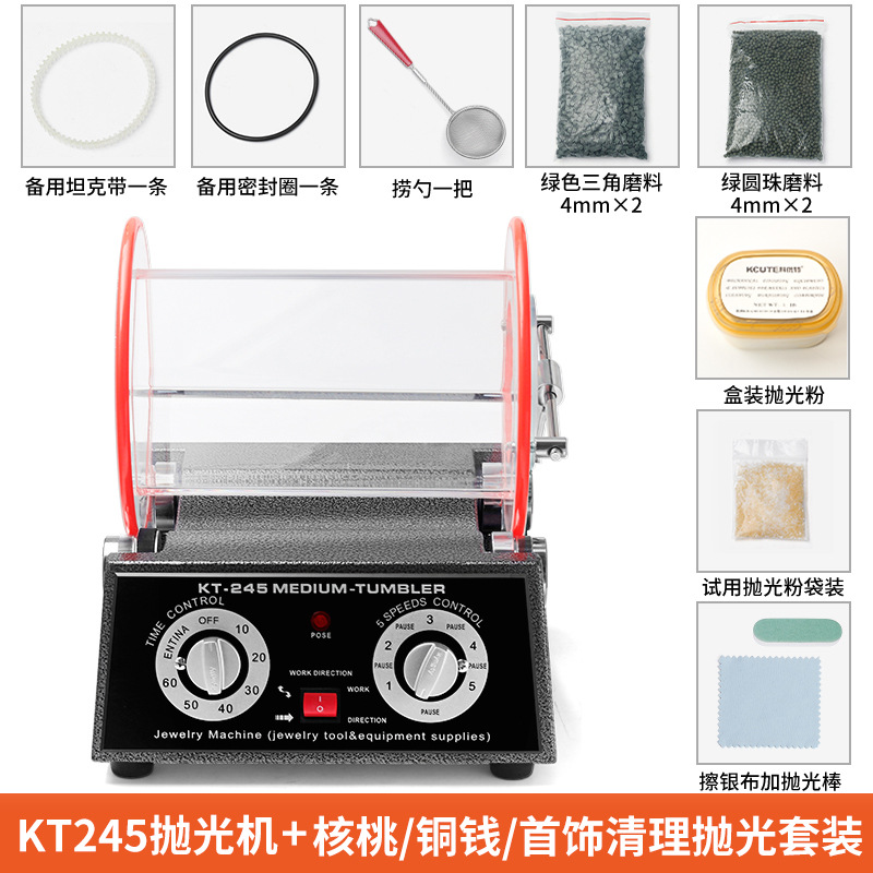 【KT245】8KG滚筒抛光机:核桃/铜钱/首饰套装