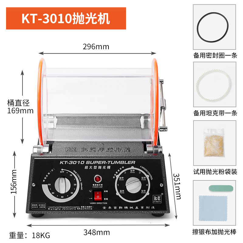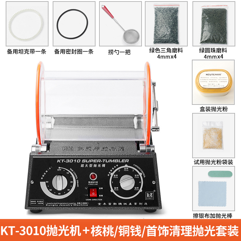 【KT3010】15KG滚筒抛光机:核桃/铜钱/首饰套装