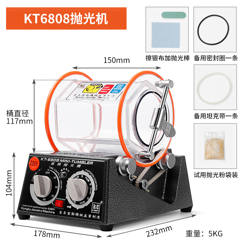 【KT6808】3KG滚筒抛光机:首饰/金属套装