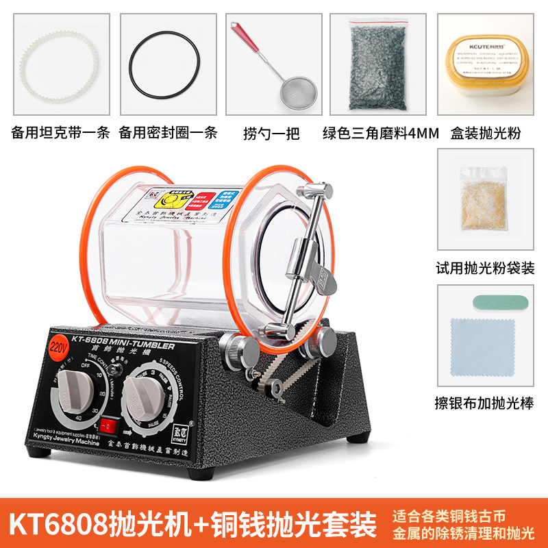 【KT6808】3KG滚筒抛光机:铜钱/古币套装