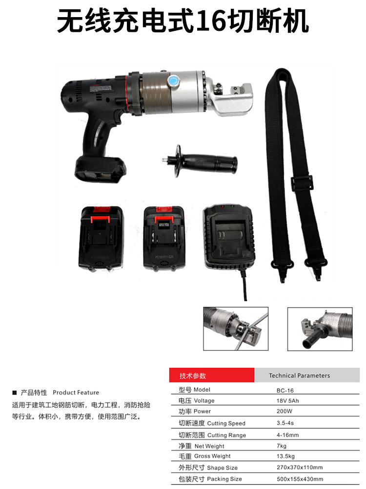 无线充电式SC-16C剪刀型切断机 可剪4-16MM