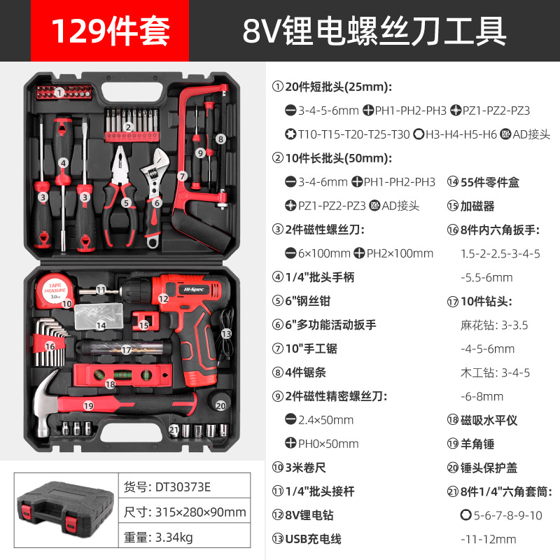 129件套8V锂电钻套装
