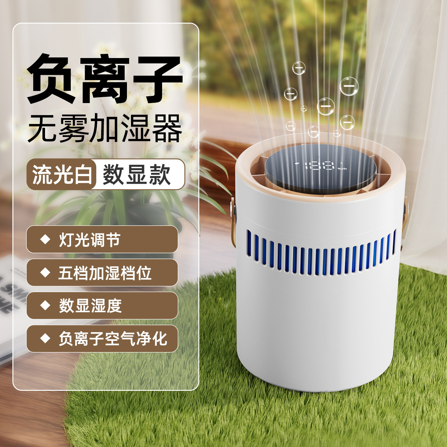 白色无雾款-高配数显+负离子+100档-5L