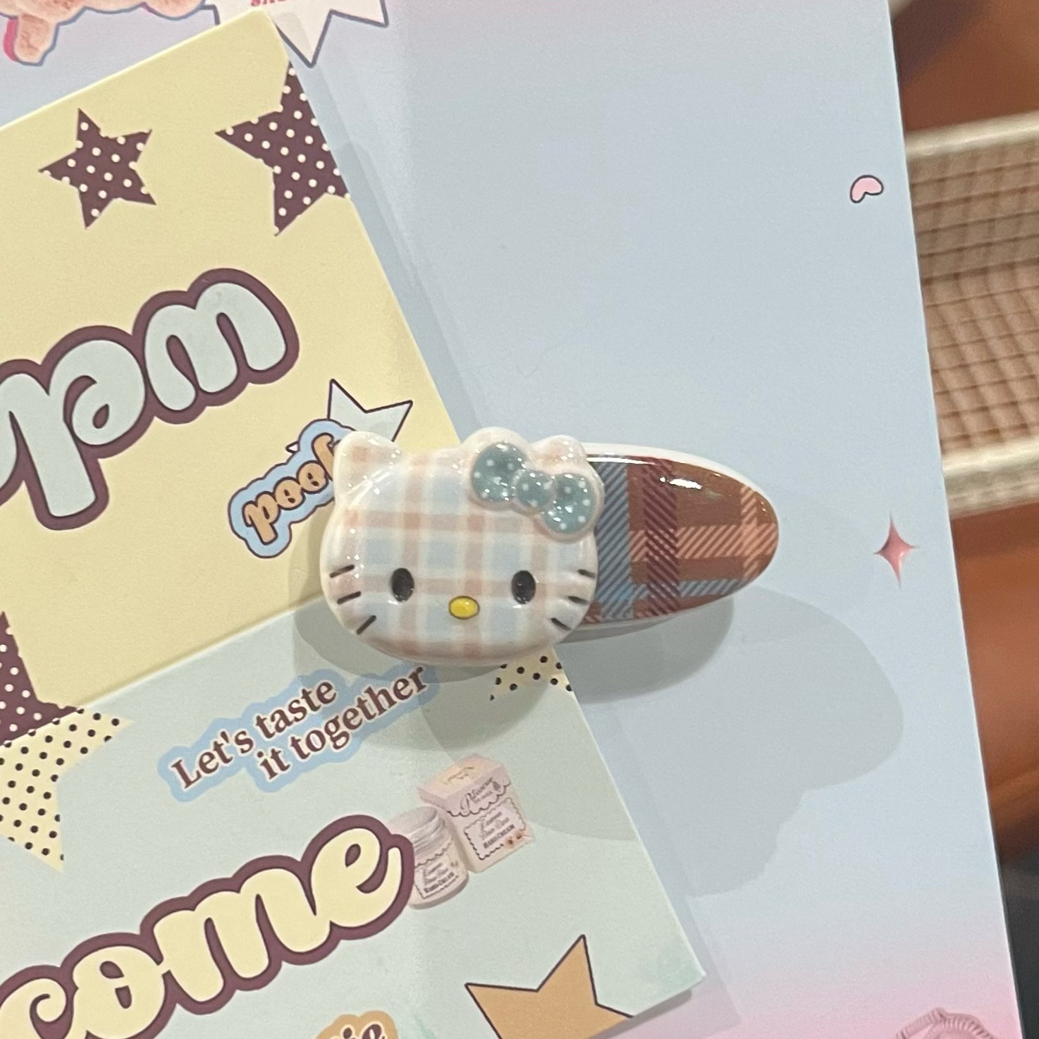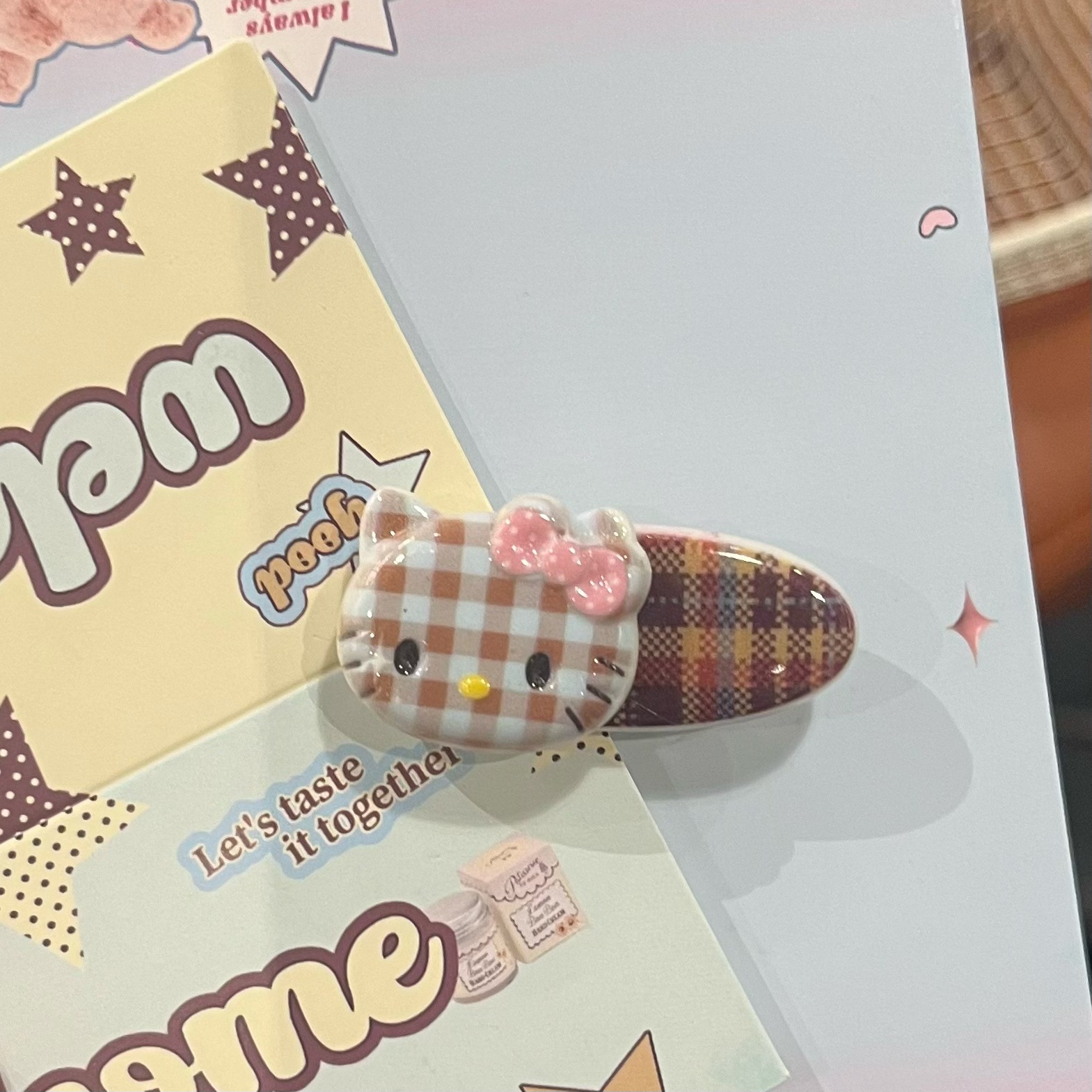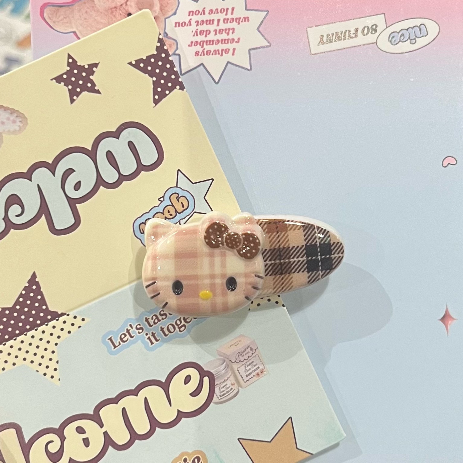 28# plaid cat oval clip [light blue cat]