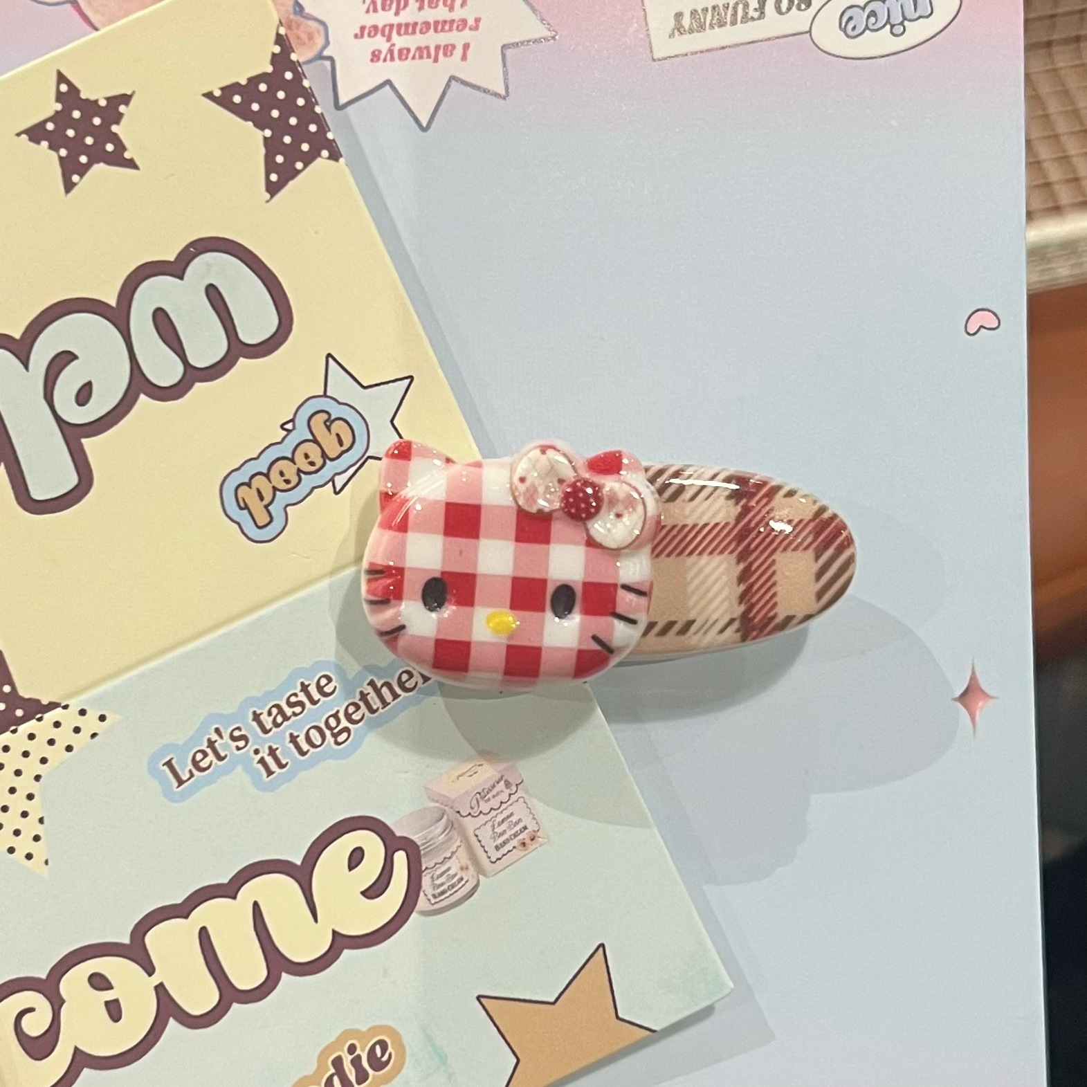 24# plaid cat oval clip [red cat]