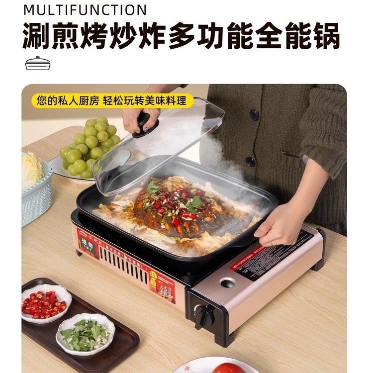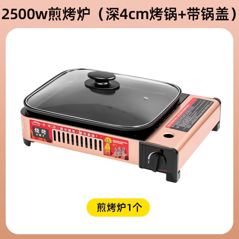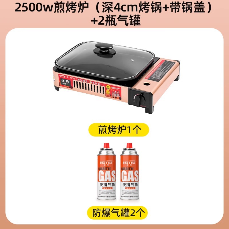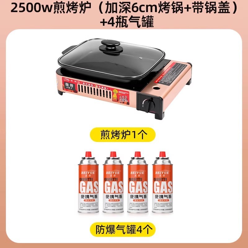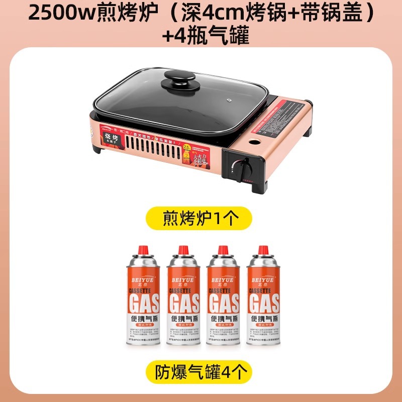 2500w煎烤炉+(深4cm烤锅+带锅盖)+4瓶防爆气罐