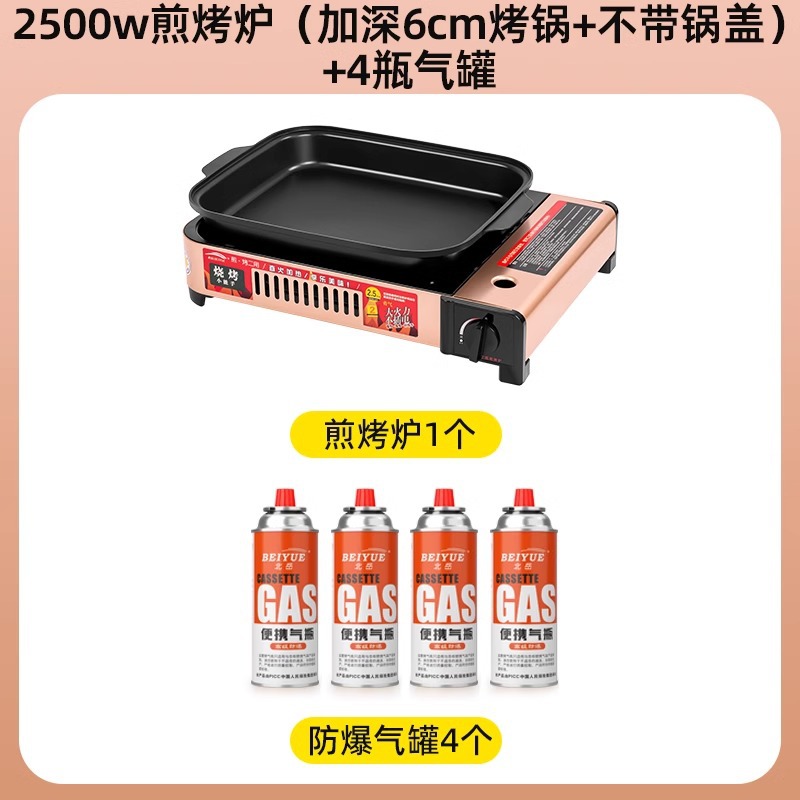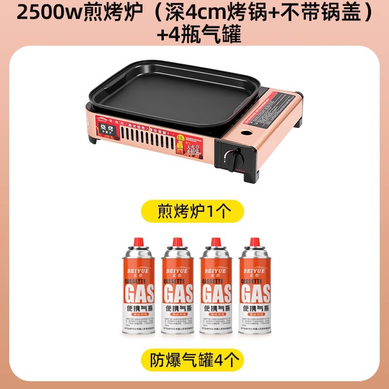 2500w煎烤炉+(深4cm烤锅+不带锅盖)+4瓶防爆气罐