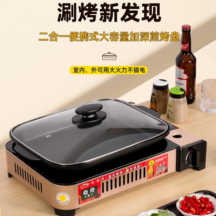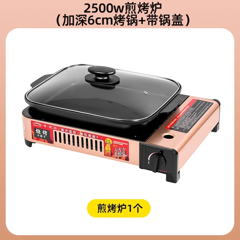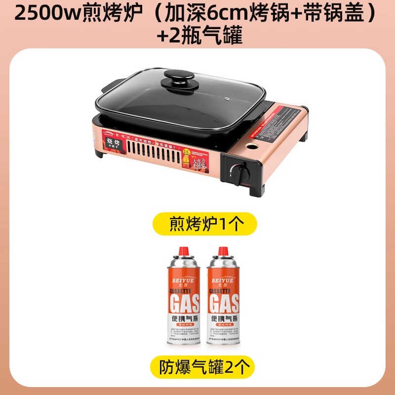 2500w煎烤炉+(加深6cm烤锅+带锅盖)+2瓶防爆气罐
